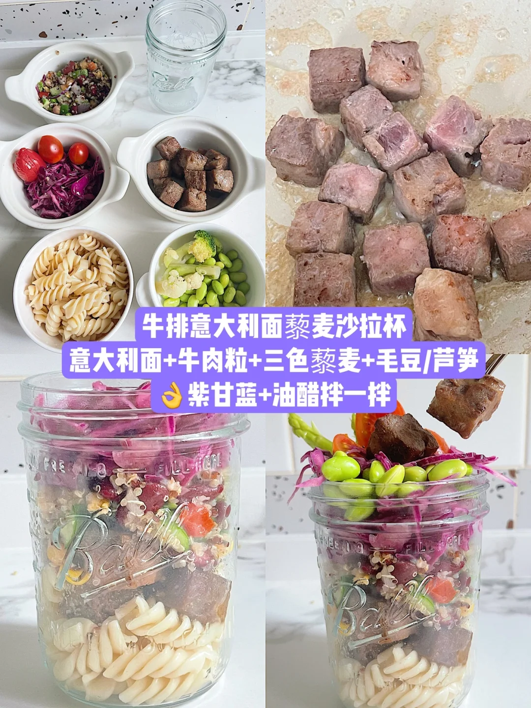 4⃣️牛排意大利面三色藜麦沙拉杯