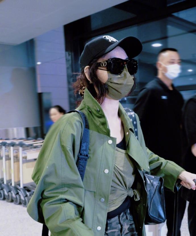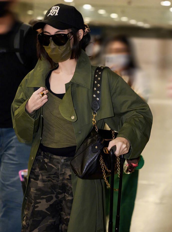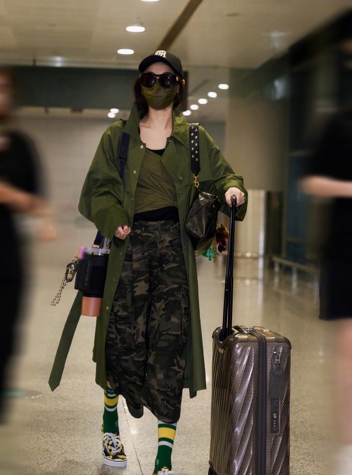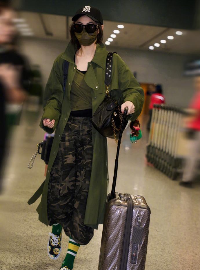 最近张柏芝现身上海机场,她这回搭配的特别有潮流时尚气息,还很洒脱。 张柏芝里面穿卡其色T恤,下身穿迷彩风格的裙子,凸显出了完美的身穿比例。 她脚踩漂亮的硫化鞋,头戴黑色棒球帽,还搭配了黑色的墨镜,显得好酷。 张柏芝外面套装卡其色的大衣,有种风度偏偏的感觉,效果极为出众。 她的身材极为苗条,这次穿的很宽松,还很有潇洒时尚魅力,气质很不错。
