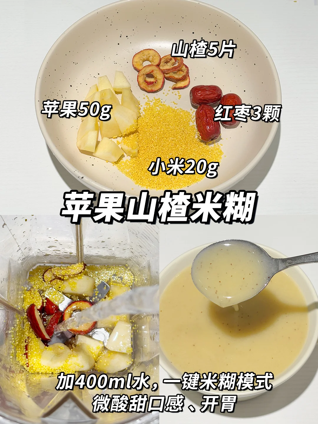 🍎苹果山楂米糊(苹果50g、山楂5片、红枣3颗、小米20g、水400ml)