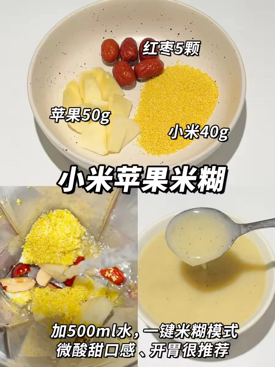 🍎小米苹果米糊(苹果50g、红枣5颗、小米40g、水500ml)
