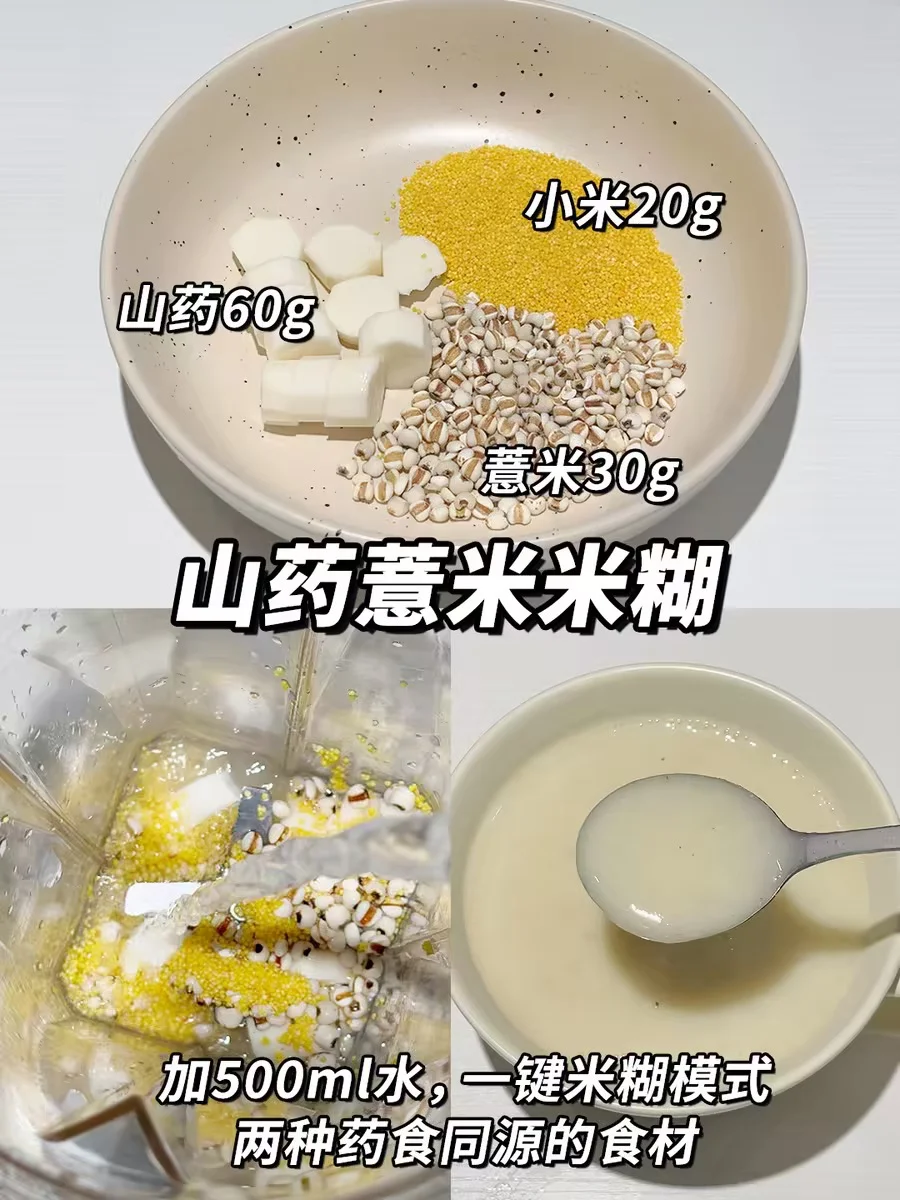🌾山药薏米米糊(山药60g、薏米30g、小米20g、水500ml)
