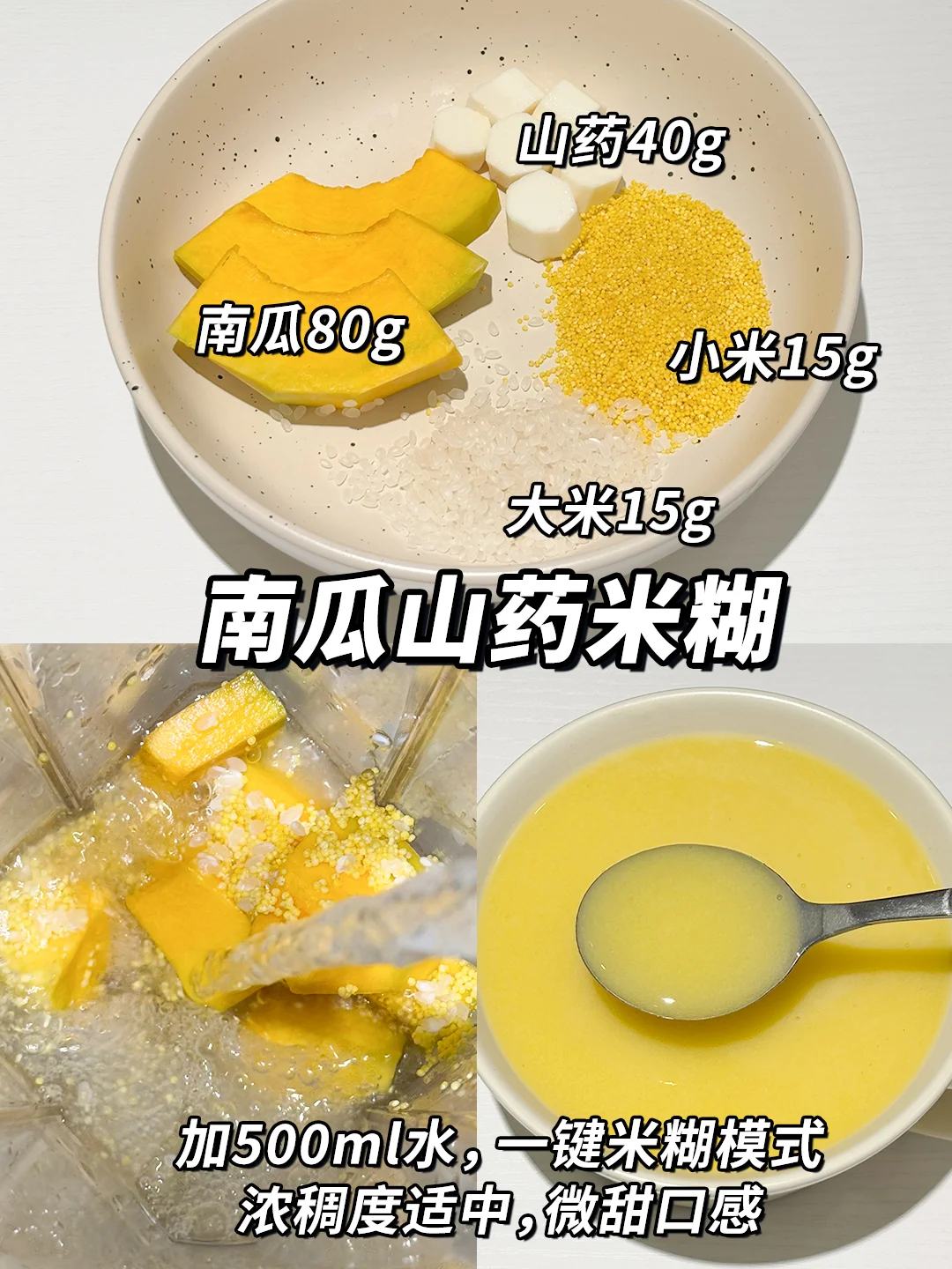 🎃南瓜山药米糊(南瓜80g、山药50g、小米15g、大米15g、水500ml)