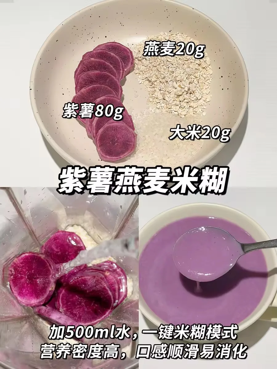 紫薯燕麦米糊(紫薯100g、大米20g、燕麦30g、水500ml)