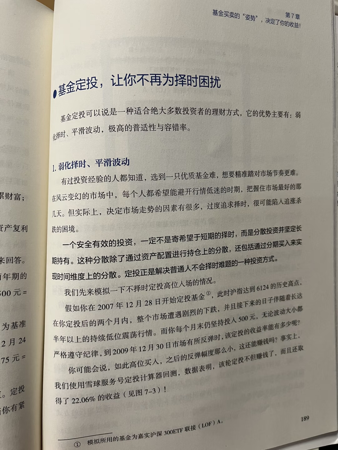 一个安全有效的投资,一定不是寄希望于短期的择时,而是分散投资并坚定长期持有。这种分散除了通过资产配置进行持仓上的分散,还包括通过分期买入来实现时间维度上的分散。定投正是解决普通人不会择时的一种投资方式。