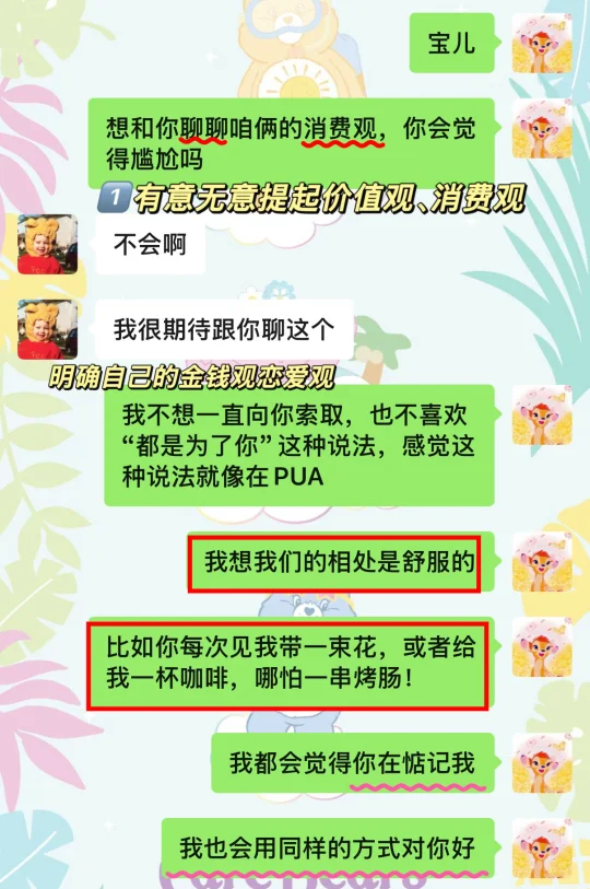 毕竟恋爱早晚都要聊到这些,聊地越早越能判断出两个人是否合适。