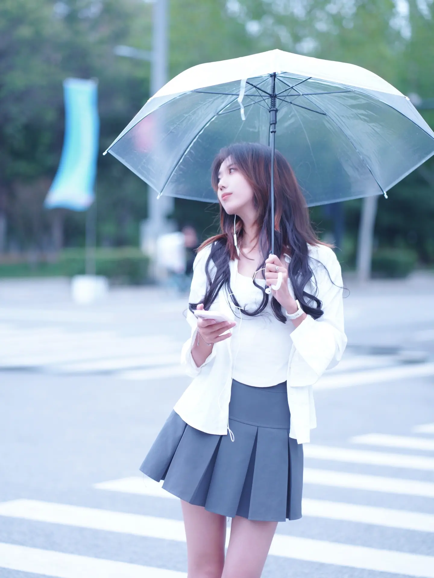 在想什么。又开学了😭来学校报到恰逢雨天,在创新港的公交车站拍出了氛围感照片😼
