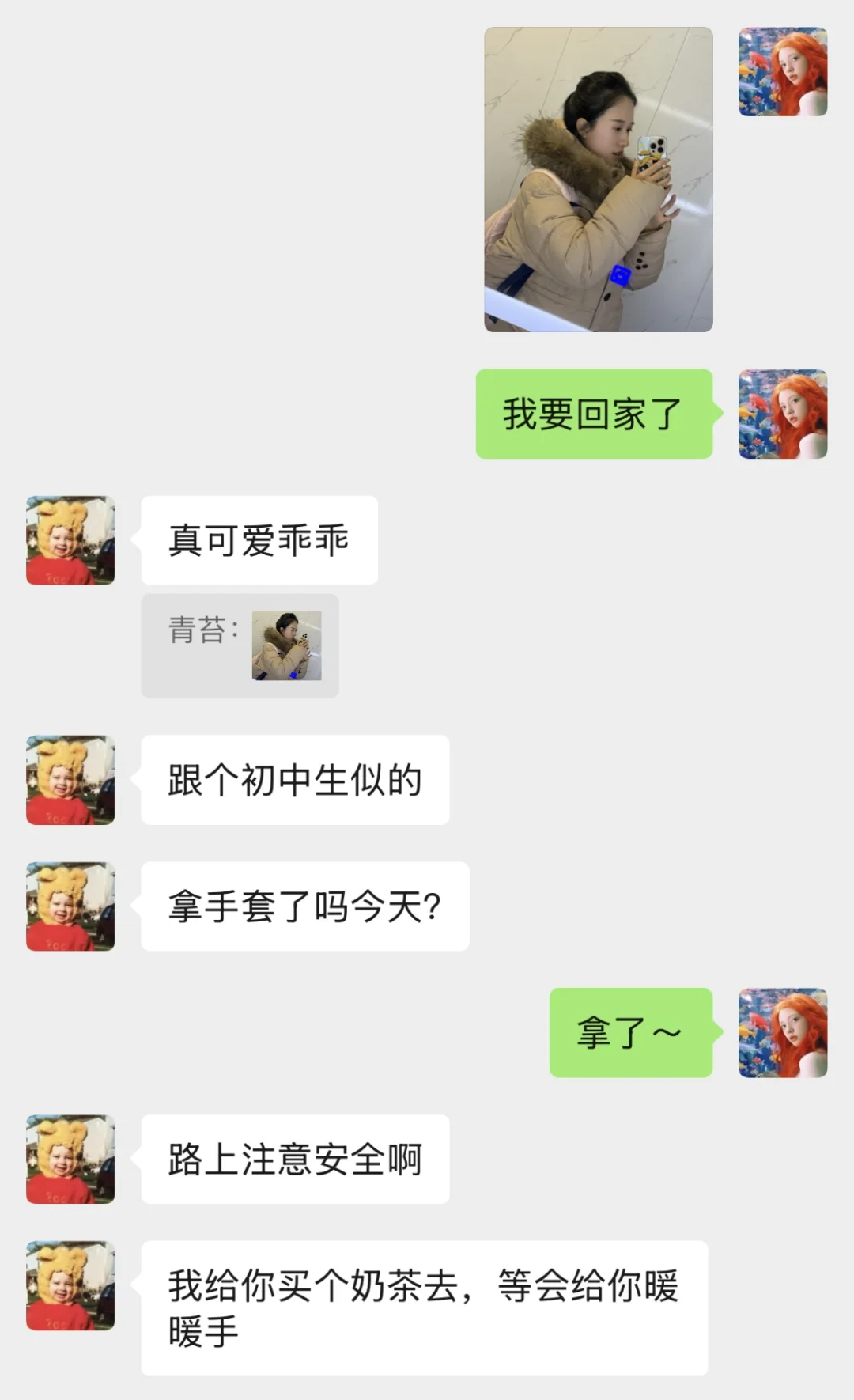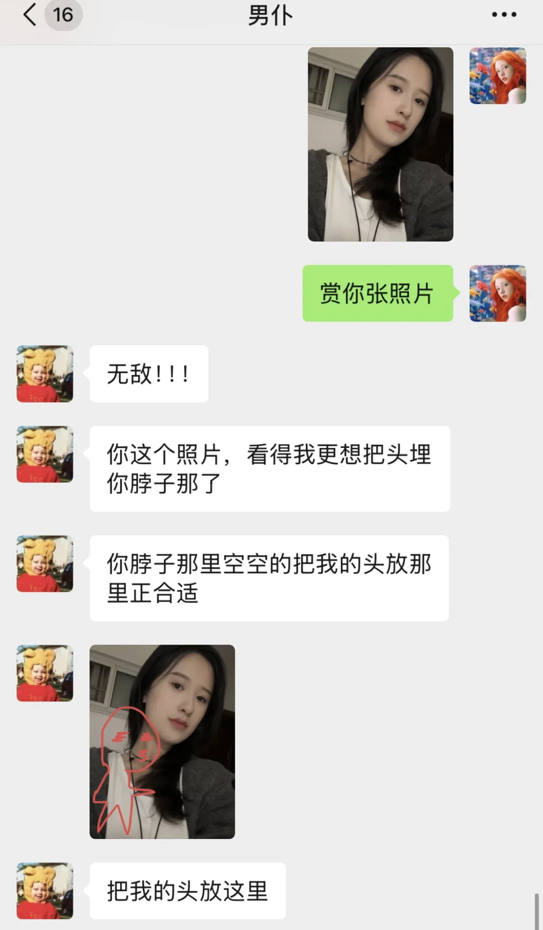 我随便给他发了个自拍,他赶紧大夸特夸,说我长得跟仙女儿似的。