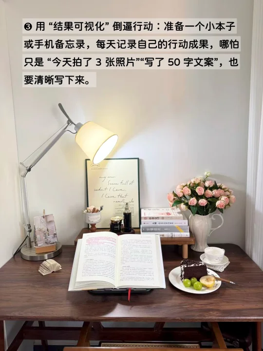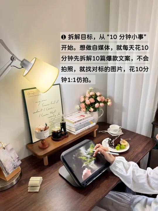 经常有姐妹跑来问我: 做自媒体从哪开始呀? 不知道发什么怎么办? 拍照不好可咋整? 不会写文案怎么办? … 我耐心给出建议后,往往听到的 却是:等有时间了,我尝试一下…… 其实真的不要等,好状态不是等出来的,而是干出来的。 我主业是20年的老编辑,不等这事我有发言权,因为我们每次发稿都有截稿期限,所以培养了我凡事立刻就办的风格。 自媒体也是如此,我想通过自媒体倒逼自己持续学习,不断成长。2年多来我下班后所有的时间,基本上都投入了进去: 连续直播100多场 笔记输出400多篇 变现也超过了5位数 这些成绩可能真的不太能拿出手,但是对我自己来说我却意义重大。 做自媒体让我看到了更好的自己:以前不爱读书的人,现在每天都要阅读;以前拍照不好,现在开始努力的补这个短板,以前输出的笔记没有人设,现在努力写出我自己。 “准备好” 是一个没有标准答案的伪命题。 要允许自己笨拙的开始,让命运的齿轮先转起来。因为只有做起来,才会有体感,知道哪里做得好,哪里做的不好,才有机会通过迭代,越做越好。 给屏幕前的你3点小建议: ❶ 拆解目标,从 “10 分钟小事” 开始。想做自媒体,就每天花10分钟先拆解10篇爆款文案,不会拍照,就找对标的图片,花10分钟1:1仿拍。 ❷ 每天固定15-20分钟的 “无理由行动时间”。在这段时间里,不管你有没有状态、想不想做,都放下手机,专注去做和目标相关的事,且不能找任何借口拖延。 ❸ 用 “结果可视化” 倒逼行动:准备一个小本子或手机备忘录,每天记录自己的行动成果,哪怕只是 “今天拍了 3 张照片”“写了 50 字文案”,也要清晰写下来。 请你,把每一次的“待会再说”,换成“现在就做”。 所以别再等了,现在就拿起手机,拍下一张照片,写下一段文案。 你离想要的样子,只差 “立刻行动” 这一步。