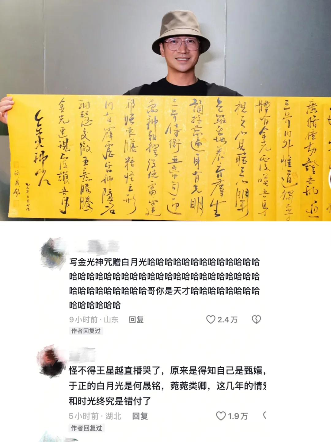 许凯出轨,结果全世界都认识了于正的白月光…… 年度失恋金句:连朋友都不是 哈哈哈 【事件回顾】 许凯前女友许荔莎曝光许凯出轨, 粉丝不信,她就晒了聊天记录, 其中提到 “许凯说的,他老板忘不了自己的白月光何晟铭”。 然后于正怒气冲冲给许凯洗地, 却被粉丝舞到面前, 然后他说,十指相扣咋了,就是一个朋友, 连朋友都不是…… 然后他就去输液,安静了…… 接着白月光何晟铭晒出手写金光神咒的视频, 落款为 “赠白月光”,当被网友追问时,他又表示 “手滑了”。 8 月 23 日,何晟铭还发布了一条机场定位及时间截图的微博, 因卡点 “1314” 再次引发网友热议。 后面直播又各种夸赞于正老师。 一向冲浪前线,生怕别人蹭他流量的于妈, 却一句话都不敢出来说…… 这不是真爱是什么呀 王星越最惨,直播都哭了, 这下全网都知道他是替身了 哈哈哈 中心人物许凯完美隐身了…… 如果这是公关,这方法不错吖~