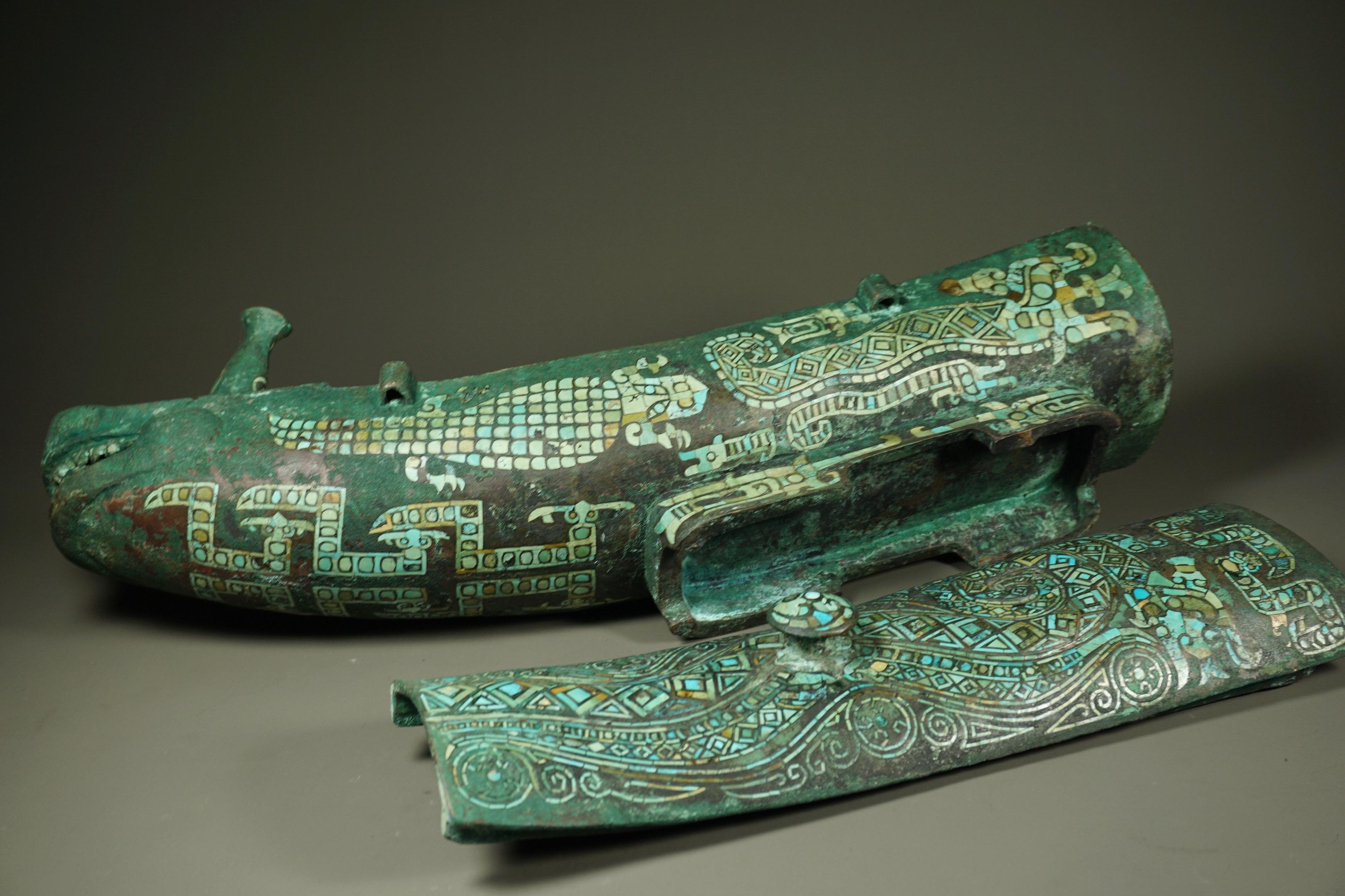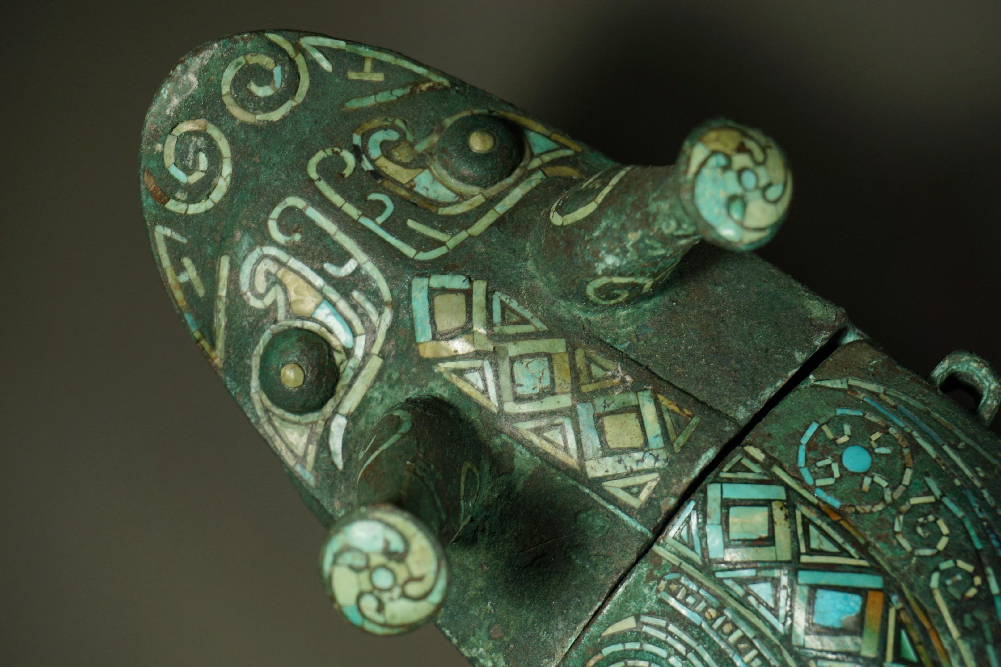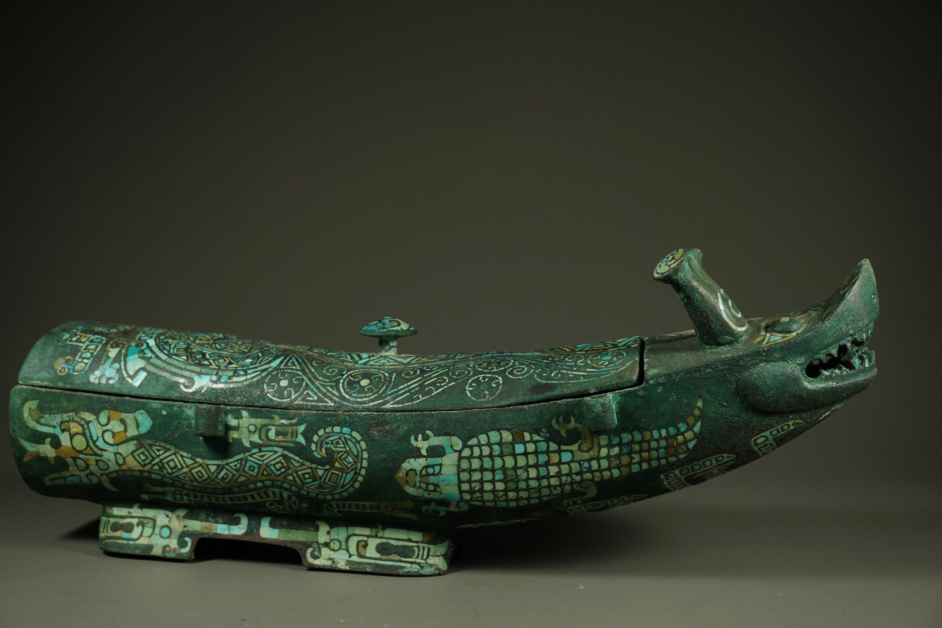 青铜松石觥。满身镶嵌绿松石纹饰,殿堂级!!!