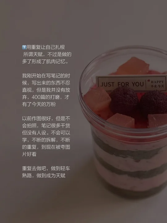 以前作图很好,但是不会拍照,笔记很多干货但没有人设。不会可以学,不断的拆解,不断的重复,到现在被夸图片好看