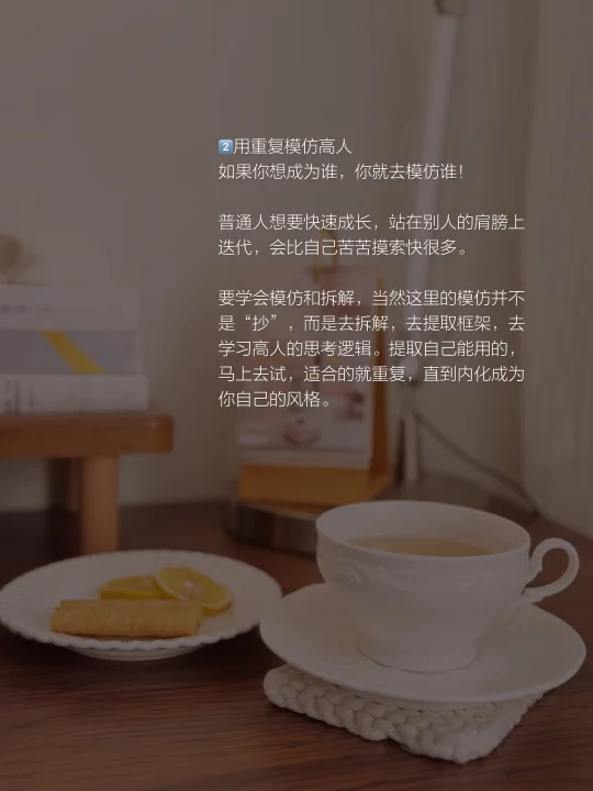 要学会模仿和拆解,当然这里的模仿并不是“抄”,而是去拆解,去提取框架,去学习高人的思考逻辑。