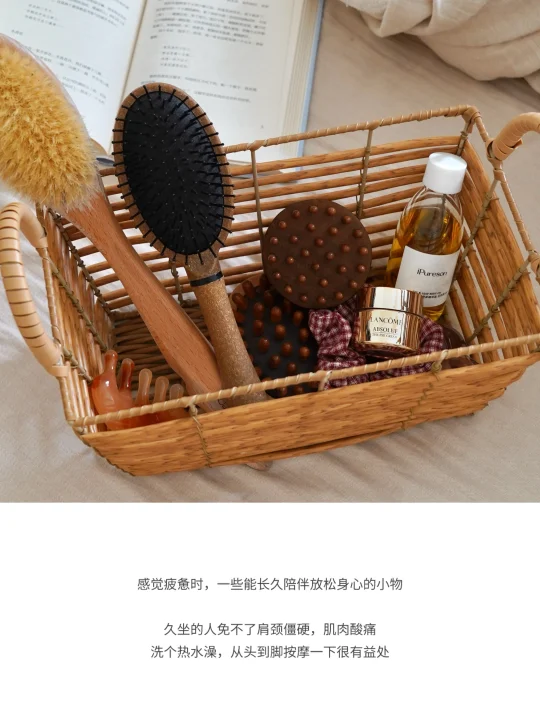 闲暇时,我会边听播客边给自己放松。点上一罐香气舒缓的蜡烛,舒服地洗个澡,用气垫梳仔细疏通头皮,再用经络刷按摩酸胀的肌肉,久坐的人肩颈多少有些小问题,时常按摩很有益处。
