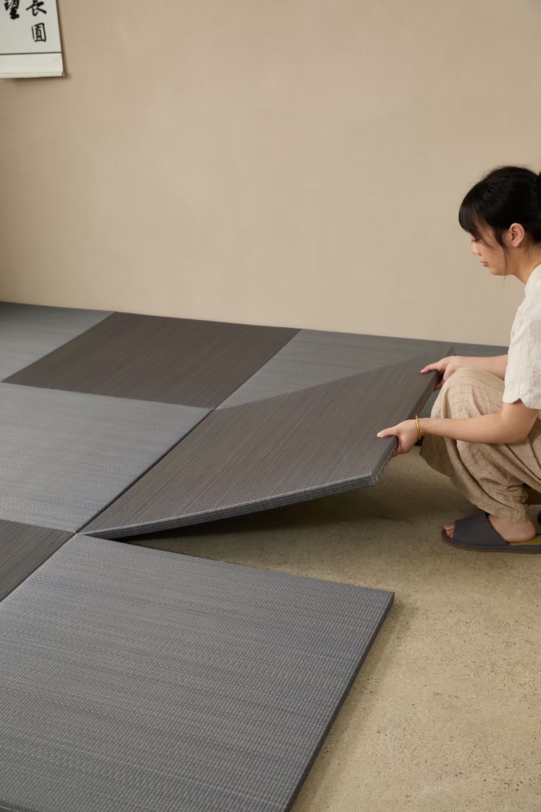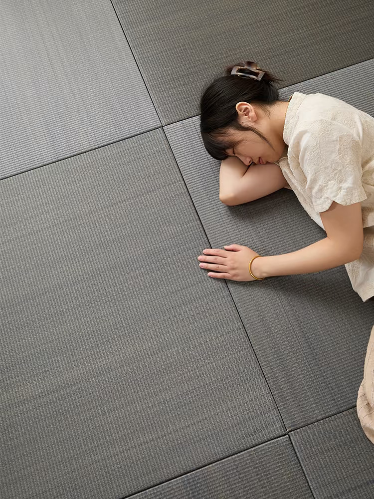天然蔺草编织的榻榻米垫,高级灰色调,为空间注入宁静松弛的气息。 可定制尺寸,贴合你的生活场景,打造一方慵懒、安静且极具质感的休憩角落。 在这里,可以独坐发呆,或与好友闲谈,一切都自然而舒适。 市集秋上新 榻榻米垫 榻榻米定制 宁波榻榻米定制 日式榻榻米 榻榻米房间 家居布置