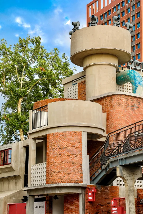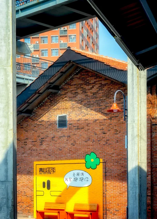 🩵 拍照点位:工业风红墙、艺术装置、复古街区街景