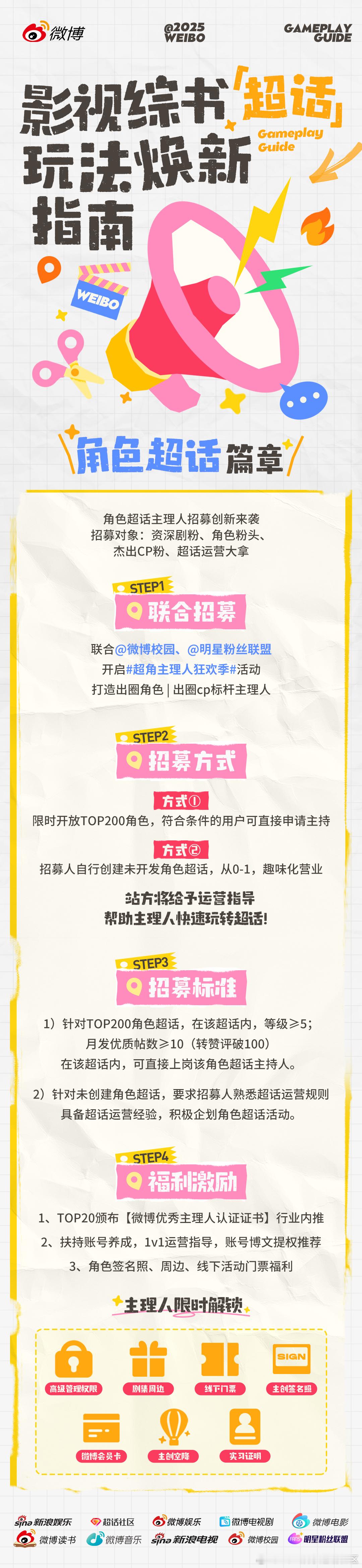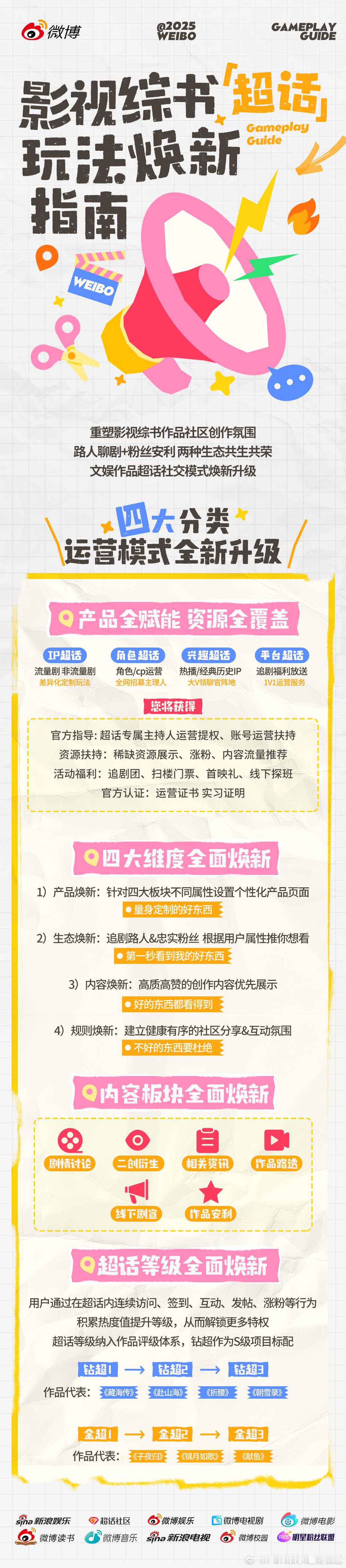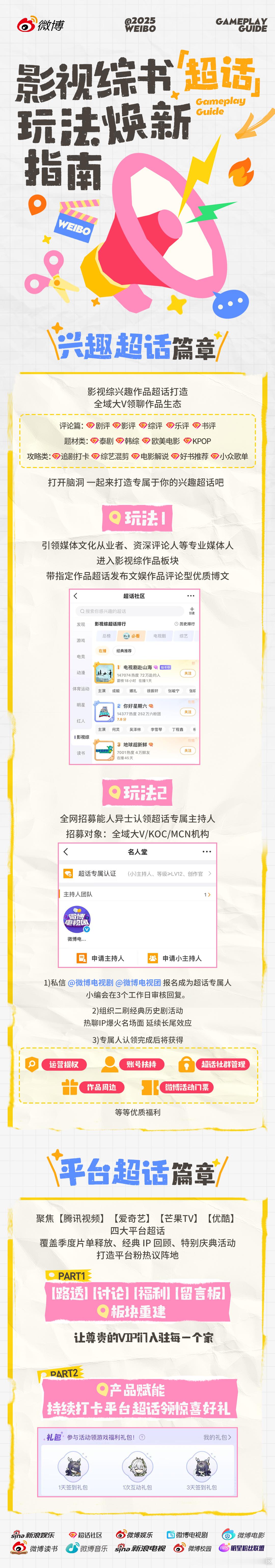 角色超话启动超角主理人狂欢季 ,招募高校党和角色粉,精细化运营角色超;兴趣超话覆盖全文娱领域,邀大V带头深度聊,让好作品被看见;