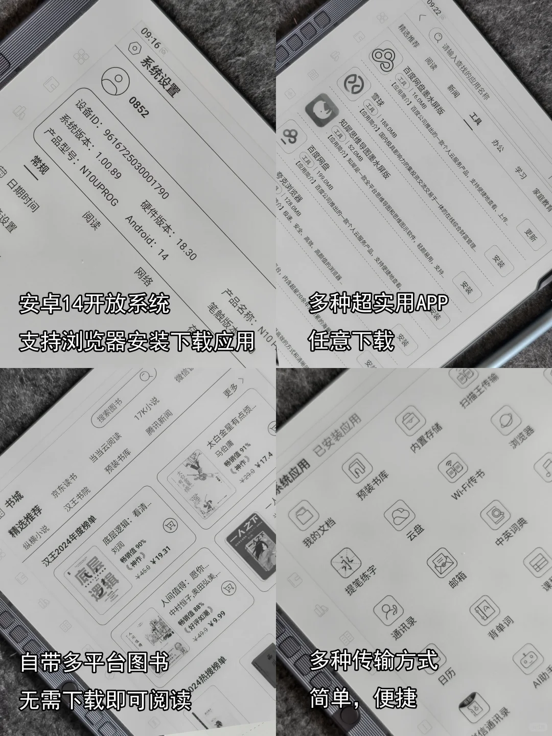 传书传文件更方便,WiFi、蓝牙秒搞定,想装常用阅读APP也没问题,真正实现阅读自由!