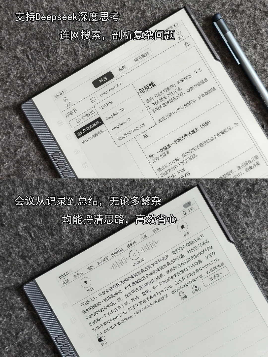 AI功能更是打工人刚需!跟大模型深度适配,会议录音能分角色转文字,多语言支持还离线能用,准确率超高,最后一键总结提炼重点,再乱的会议内容都能捋顺,15秒就可以生成会议纪要,效率直接up!还接入了DeepSeek满血版,随时深度问答超实用~