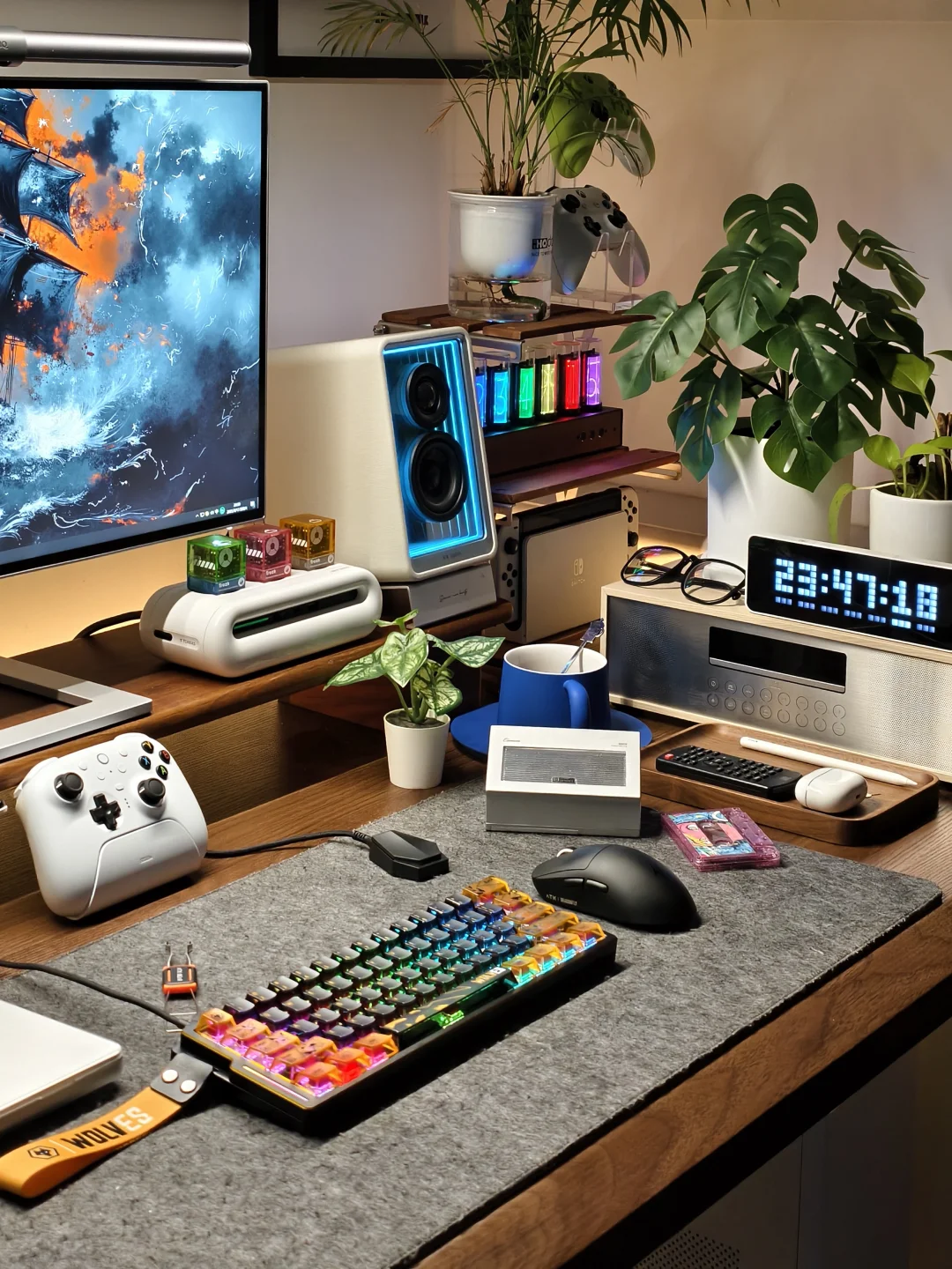 ⭕详细设备清单:🧾 ⭕显示器:飞利浦27E2F7900 ⭕笔记本:MacBook Pro14寸 ⭕主机:i7+4060ti+32G ⭕键盘:ATK EDGE60 HE ⭕鼠标:ATK 蜻蜓 A9Ultra ⭕插线板:图拉斯小云团 ⭕蓝牙音响:漫步者花再Halo 2.0 ⭕屏幕挂灯:德普DP(80cm) ⭕电动升降桌:智芯X1 ⭕饮水机:米家即热饮水机