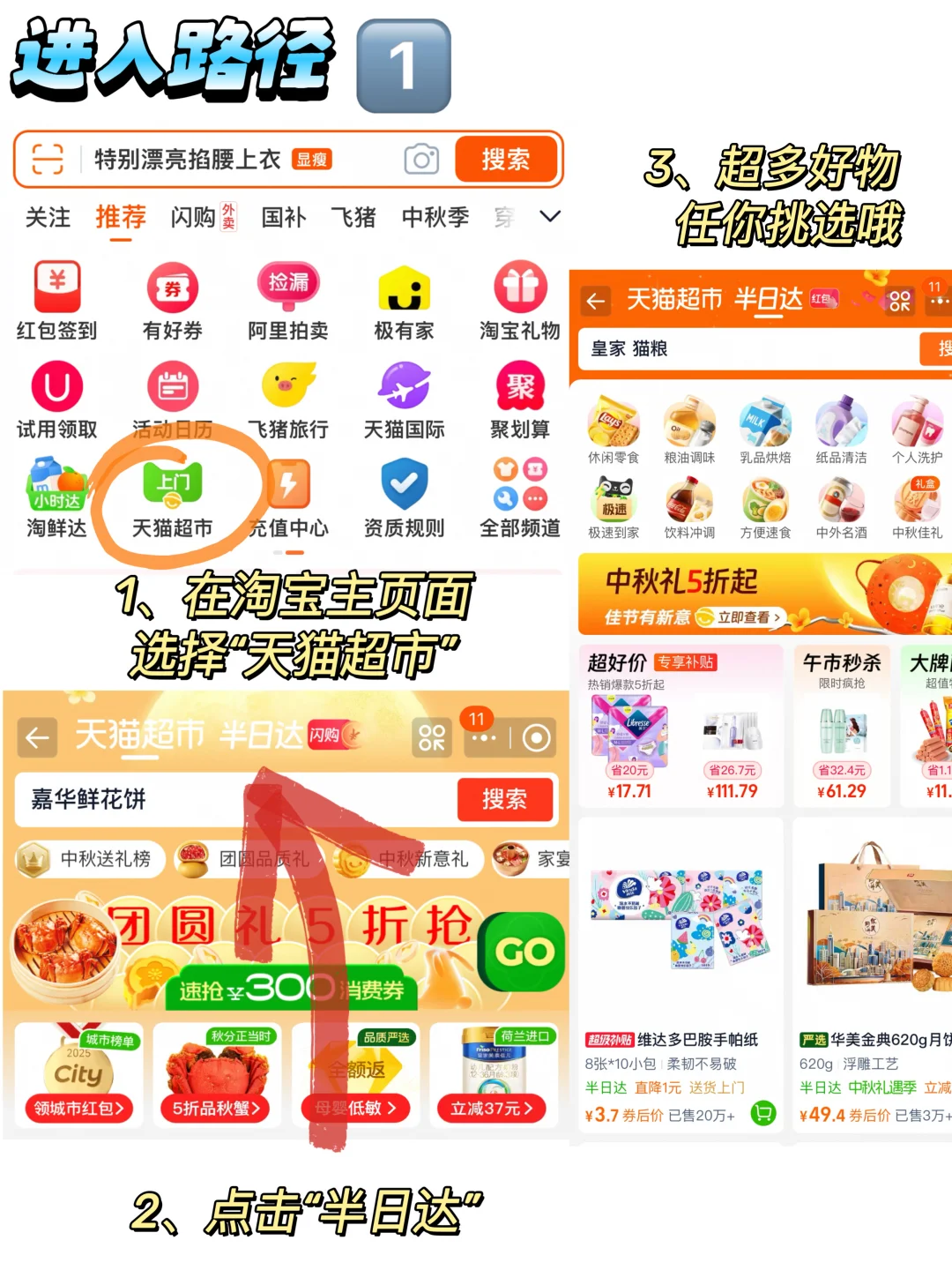 ✅打开淘宝,进入“天猫超市”直达半日达会场