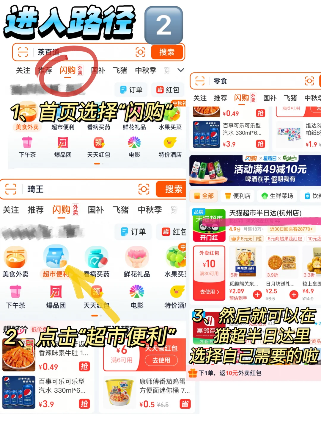✅打开淘宝闪购,点击“超市便利”➡️也能进入半日达会场!