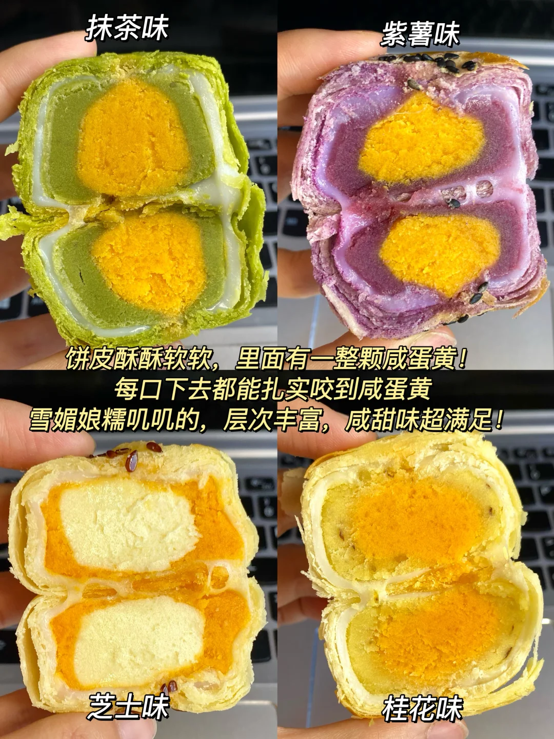 饼皮酥酥软软,里面有一整颗咸蛋黄!每口下去都能扎实咬到咸蛋黄,再搭配糯叽叽的雪媚娘,口感丰富有层次,咸甜咸甜的超级满足!