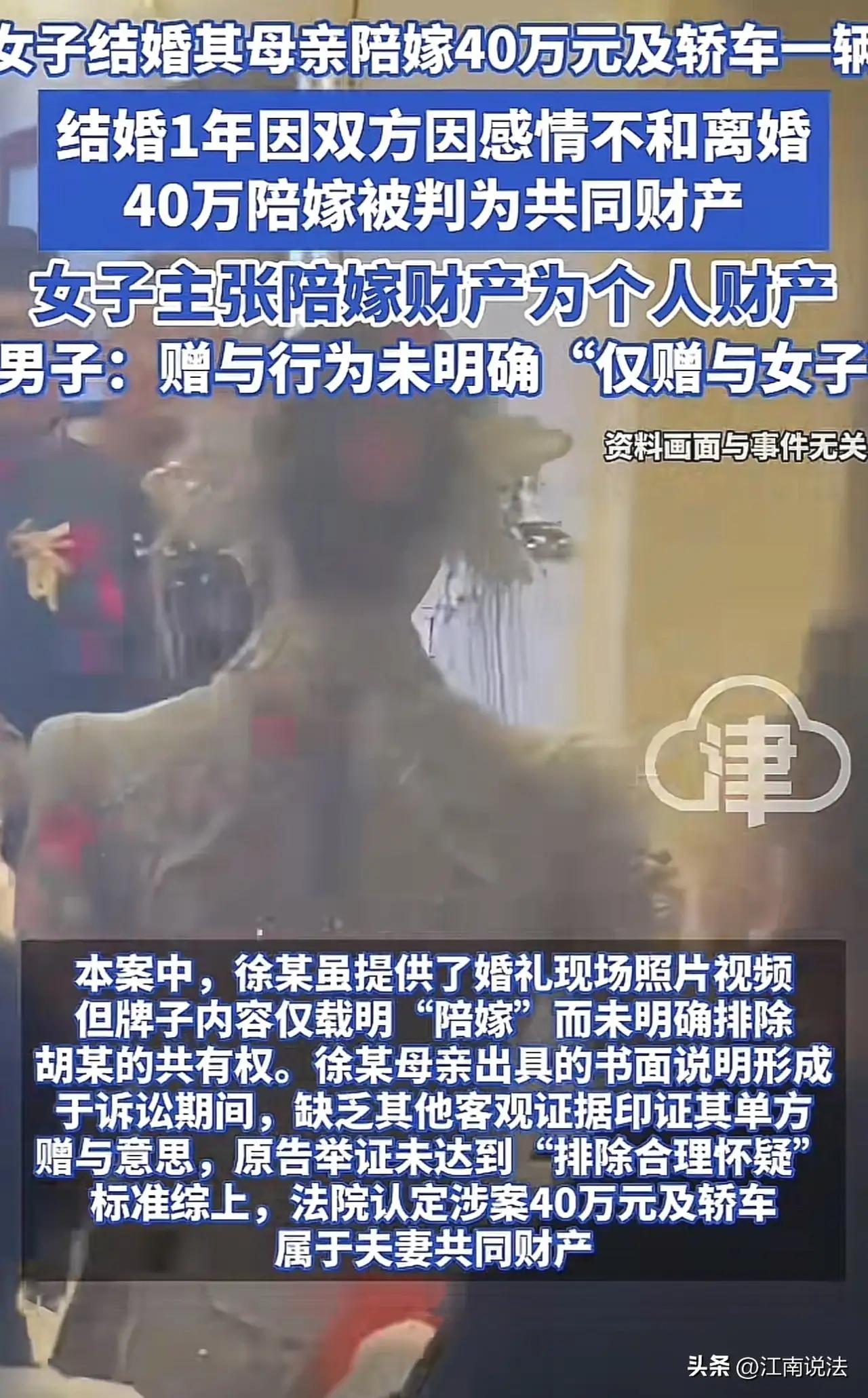 山东icon,一女子嫁人,娘家直接陪嫁一辆汽车和40万,岂料不到1年,夫妻俩吵着离婚,妻子认为这40万和小车,是娘家赠与她个人的,要带回娘家,可丈夫不同意,认为这是夫妻共同财产应当平分,而法院判决令人意外! 山东ICON,一女子嫁人,娘家直接陪嫁一辆汽车和40万,原本以为这是幸福的开始,却没想到仅仅不到一年,家庭的裂痕就逐渐暴露。夫妻之间的争执逐渐升级,最核心的问题竟然是那笔“赠与”财产的归属。 事情的起因很简单:新婚不久,这位女子的娘家为了表达心意,送上了一辆豪车和一笔40万的现金。起初,夫妻俩都觉得这是一份厚礼,代表着娘家的祝福和关爱。谁曾想,时间一长,家庭矛盾就像暗流涌动。 妻子坚信,这40万和那辆车是娘家赠与她个人的财产,属于她的“私有财产”,理应带回娘家。她觉得这是娘家对她的认可和支持,自己也应当拥有自主支配的权利。而丈夫则坚持认为,这些财产是夫妻共同财产,既然是婚后所得,理应平分,不能随意归属一方。 这场争执最终闹上了法院。令人意外的是,法院的判决让所有人都大吃一惊!法院认为,这笔财产应当属于夫妻共同财产,而不是单方面的赠与。判决结果引发了广泛热议:难道娘家的赠与就不能被视为个人财产?还是说,婚姻中的财产界限比我们想象的要复杂得多? 这起案件折射出一个深层次的社会问题:在传统观念与现代法律的碰撞中,个人财产权的界定变得模糊。很多人或许都曾遇到类似的困惑——娘家赠与的财产到底算谁的?婚姻中的财产界限到底在哪?而这些问题的答案,关系到每个人的切身利益,也反映出我们对“家庭”、“个人”、“财产”这些概念的认知变迁。 更令人深思的是,这场风波背后,隐藏着的是现代家庭关系中对“尊重”和“界限”的重新定义。夫妻之间的信任、娘家的关爱,究竟该如何在法律和情感之间找到平衡?在这个变革的时代,或许我们都需要重新审视那些看似简单的“财产归属”,因为它们其实关乎每个人的尊严和未来。 这不仅仅是一场关于财产归属的官司,更是一面镜子,照出了我们每个人心中对“家庭”、“个人权益”以及“爱与责任”的深刻思考。你怎么看?这场判决背后,隐藏的又是什么样的人性与价值观的碰撞?留言告诉我你的看法,让我们一起探讨这个时代的家庭密码。 陪嫁嫁妆 陪嫁2套房。