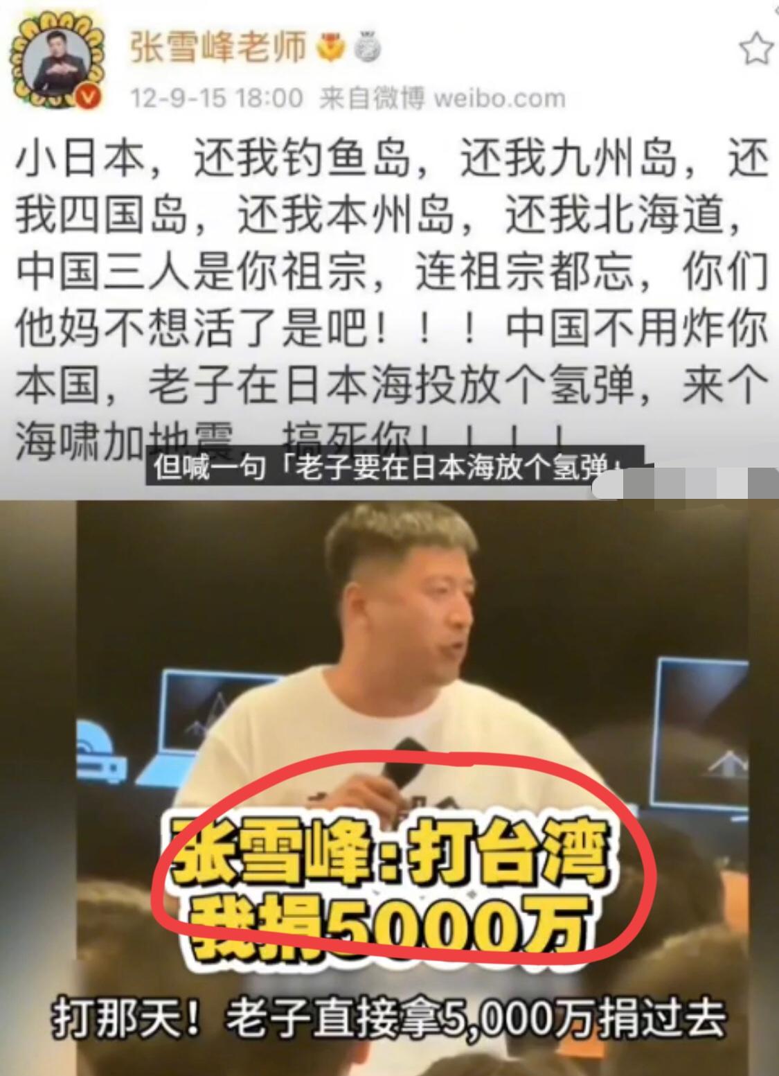 互联网的记忆不会被轻易抹去! 张雪峰早年的反日言论被翻出来了, 那语气和他后来喊“枪声一响就捐五千万”时如出一辙! 话说这人设包装啥的都能有水分,但骨子里的态度骗不了人。从考研名师到高考志愿填报界大拿,他赛道变了,可那直来直去、略带争议的风格没变。 有人觉得他是真性情,也有人质疑是炒作。但在如今网红们都小心翼翼说话的环境里,他始终敢表达,确实够特别。 在我看来,这种“互联网记忆”并非坏事,它就像一面镜子,让我们看清一个人的真实底色。 我挺欣赏他这种始终如一的劲儿,至少不藏着掖着,翻旧账实属没必要,大家觉得呢?