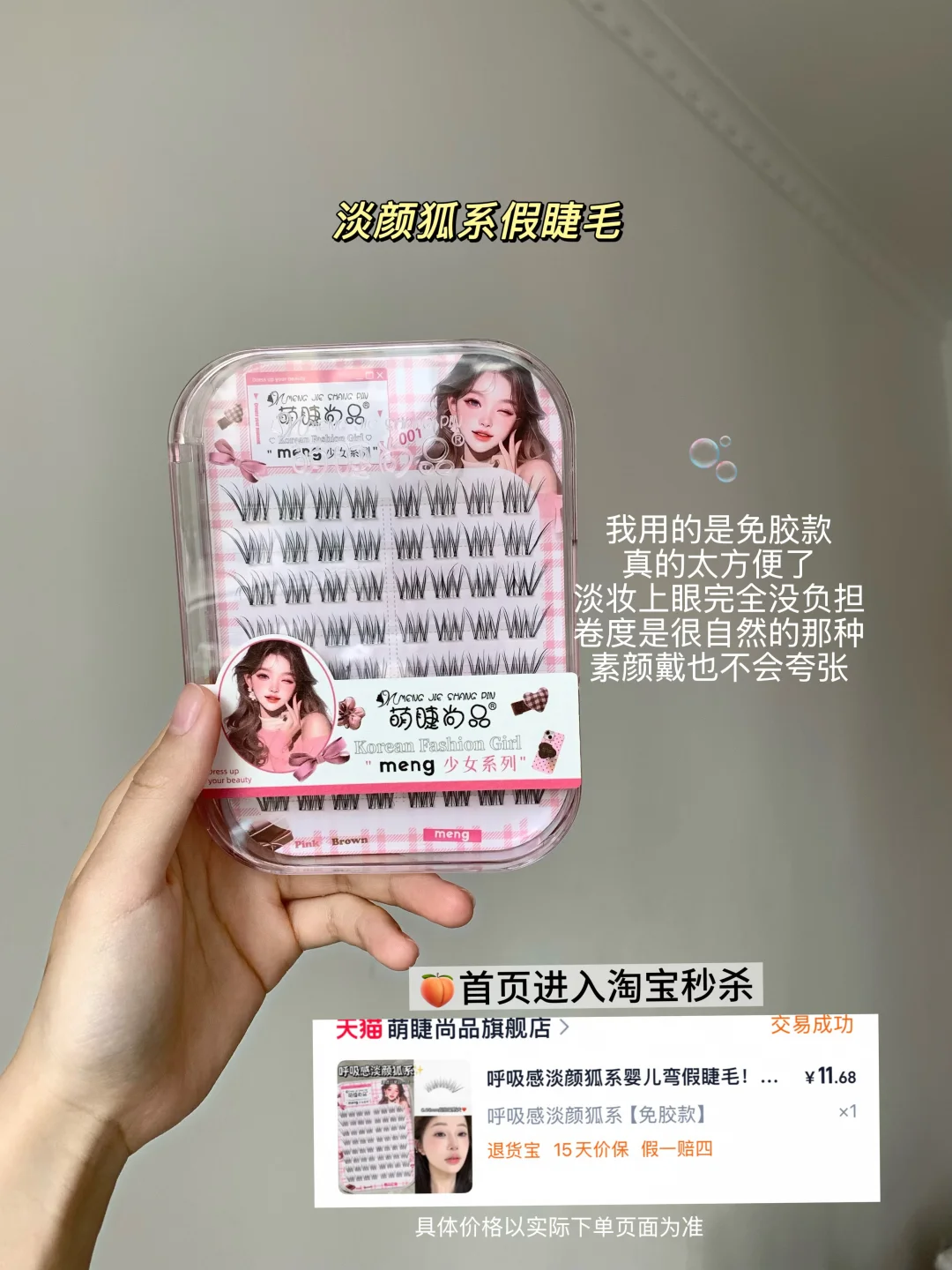 🫧呼吸感免胶假睫毛:这个卷度是那种很自然的,能放大眼睛但一点都不夸张,素颜戴也没啥问题,上眼完全没负担。