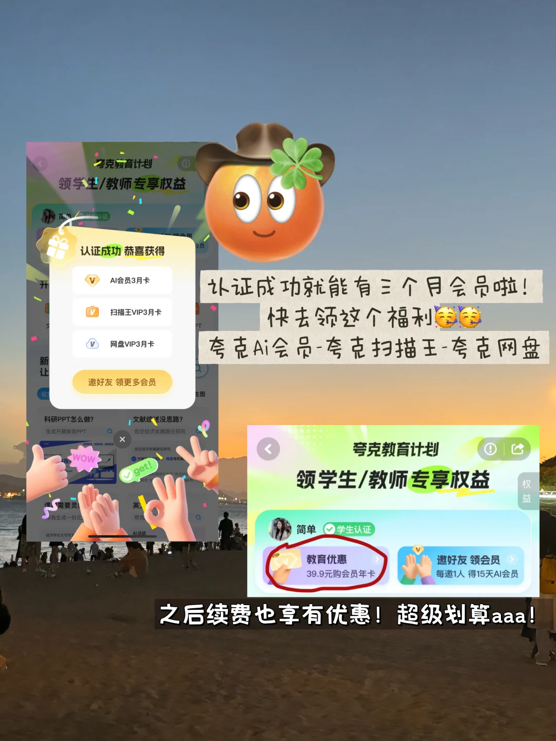 夸克首次发布了教育计划全国的在职教师和高校在校生在夸克完成认证后就能免费领取3个月的会员权益🎁包含 AI 会员➕夸克扫描王➕夸克网盘,后期续费还有专属优惠~