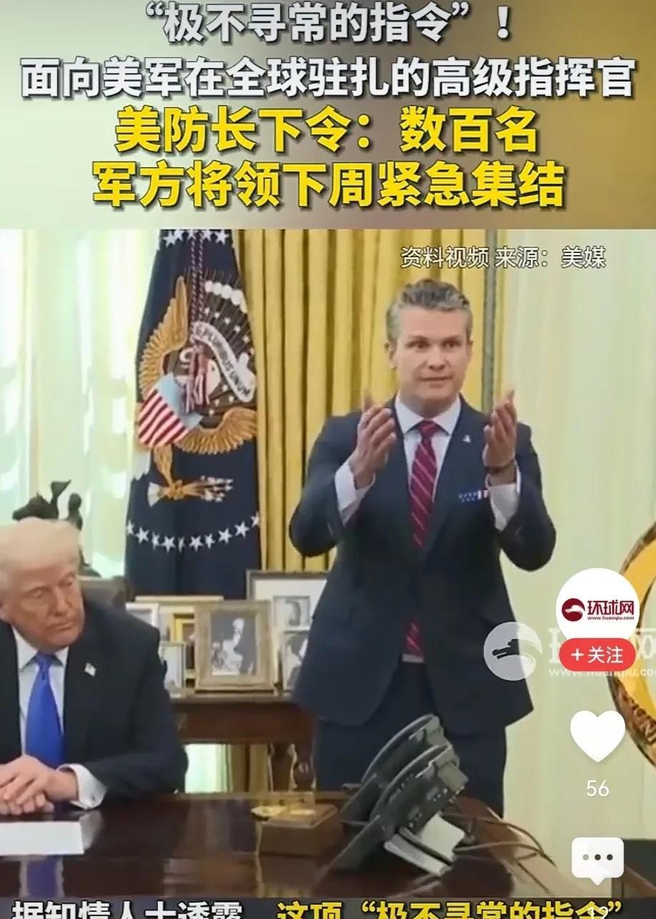 美国有大动作了吗?美国国防部长紧急召集全球一百多名军事高管集合,这可非常不寻常!