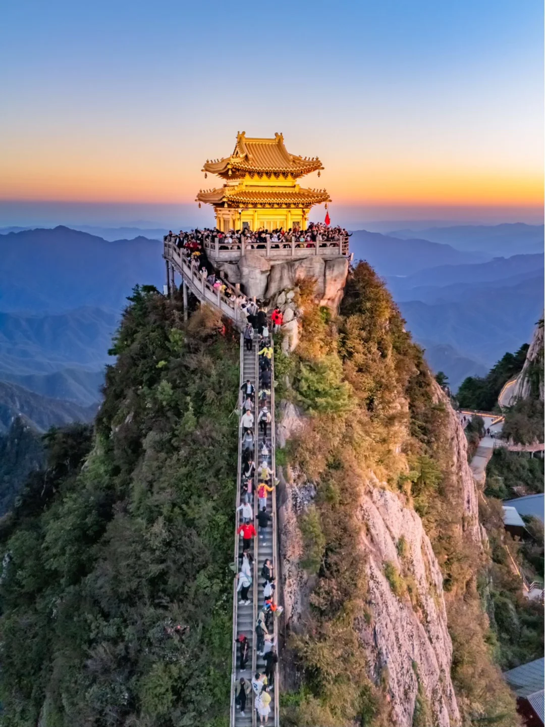 老子炼丹台遗址所在,鎏金建筑映云海如天宫