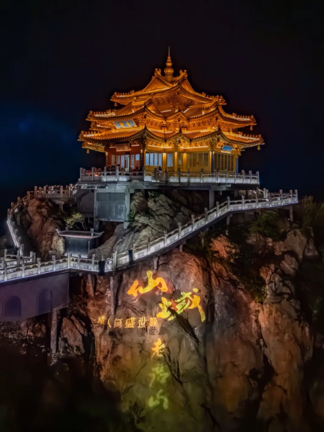 南天门 66 级台阶(拍画屏全景+金顶亮灯)
