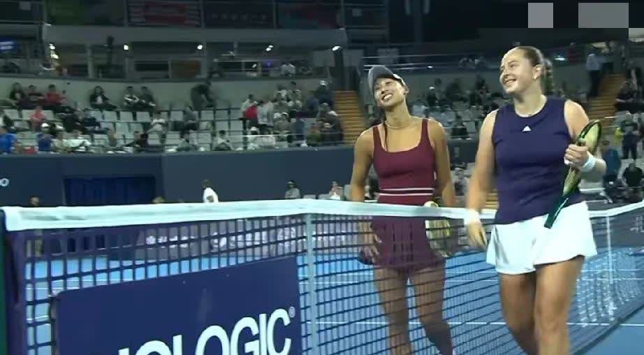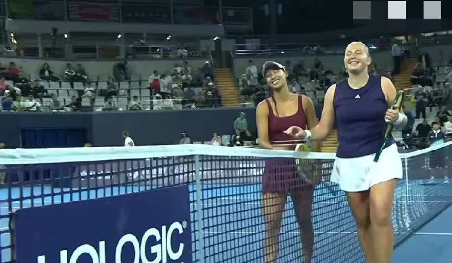 看到奥胖和韩天遇的握手了吗?虽然奥胖3-6/2-6不敌对手,但她是笑着离场的。