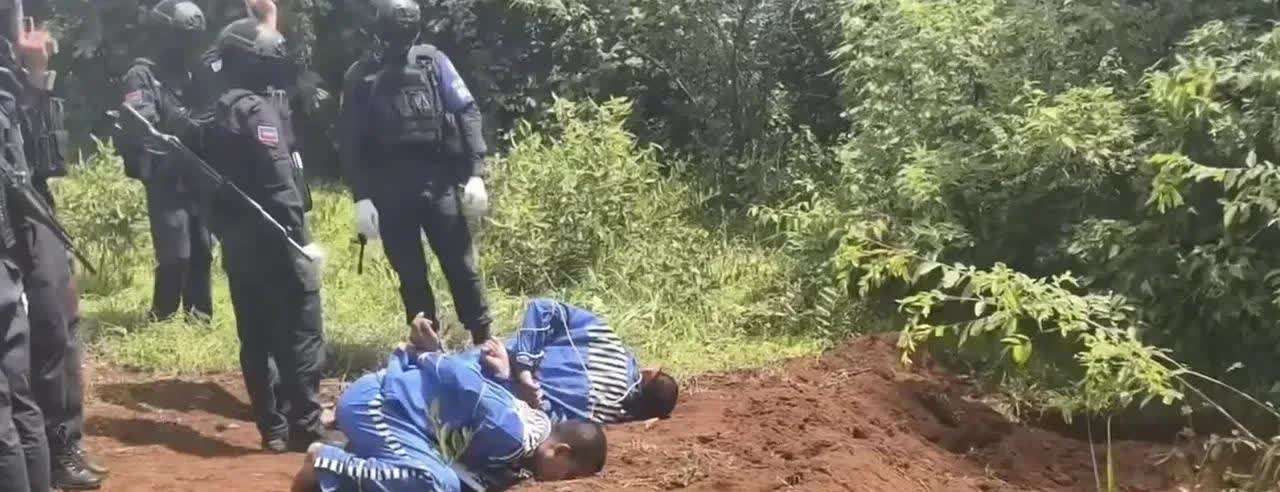 近日果敢同盟军在木邦县召开了一场公判大会,7名犯罪分子站在台上接受特区政府审判。台下几千名观众观看,场面十分热闹,大会结束后两死刑犯被押往刑场执行枪毙。 缅甸第一特区木邦县政府、果敢同盟军的执法简单直接。死刑犯被五花大绑押到刑场,手脚都用绳子绑住,想逃跑根本就不可能。 第一特区的刑场看着有点吓人,就是在山脚下一片开阔地上挖几个1米多深的土坑。犯人被拉到土坑边跪着,枪手用枪指着犯人脑袋,上边领导一声令下,枪手直接一枪爆头。 随后犯人便倒在土坑边上,枪手一脚把尸体踢进坑中,然后朝坑中填土掩埋犯人尸体,简单又快速地处理好现场走人。 这种场面虽然简单粗暴,但是很吓人的,看看两个犯人一到土坑边上早吓软了。连头都不敢抬起来,身体是半跪半躺在地上,几个土坑就在他们面前,那就是他们最后的归宿,相信他们已经很后悔了吧! 这种场面对犯罪分子有很大的威慑力,让他们不敢再轻易去犯罪。那是要付出代价滴!不过,有一点我看着好奇怪,犯人为什么穿着囚服上路呢?他们没有自己的便服换上吗?