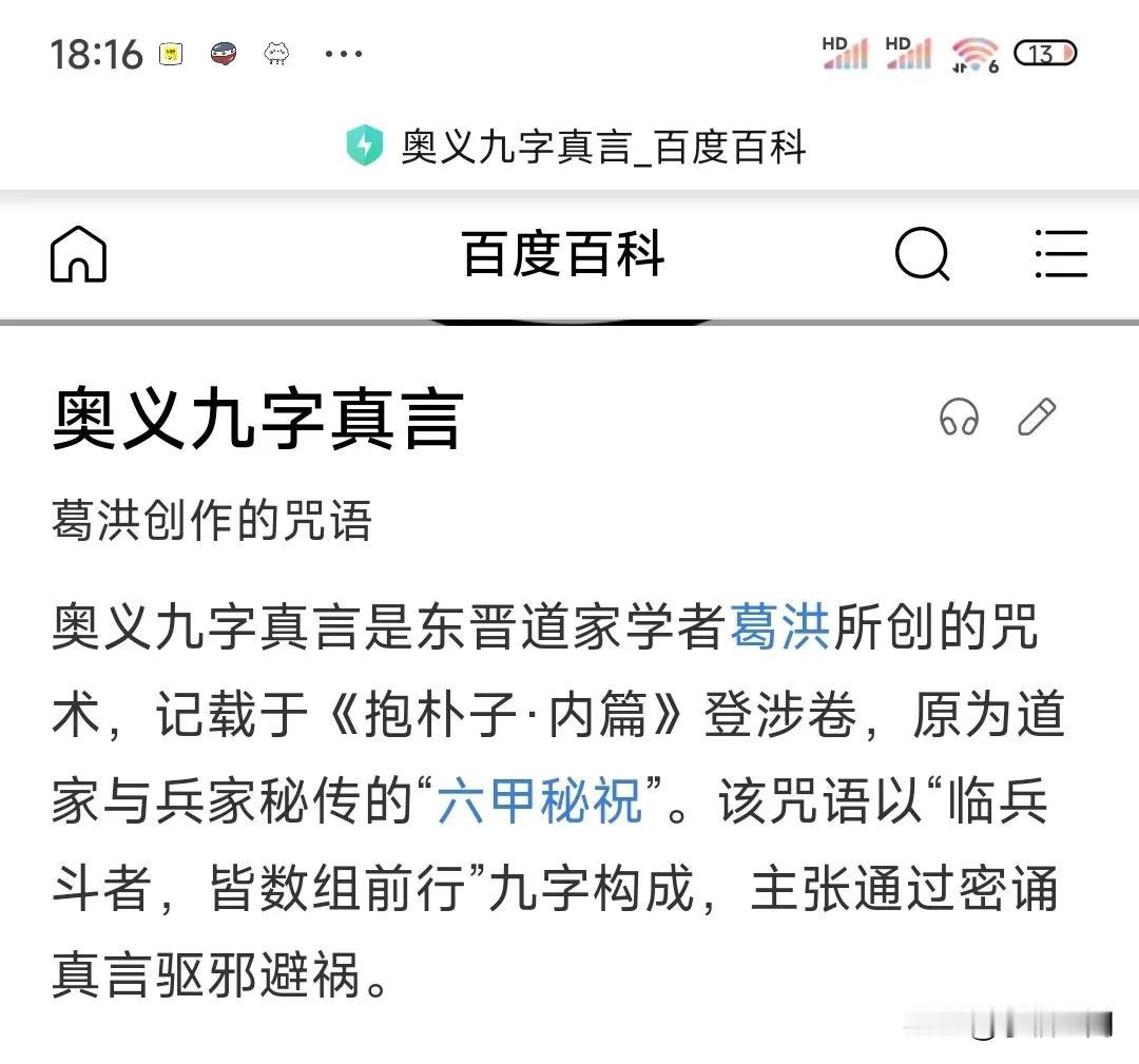 今日份乐趣——九字真言:临兵斗者,皆数组前行。 第一次接触九字,是“临兵斗者,皆阵列在前”和“临兵斗者,皆阵列前行”,当时查到说只有一个是对的,另一个是传入日本时,写错了,便信了。今日温习,又发现一个版本,言前两个都是传入日本时写错了,同时注明了此版本的原始记载出处:《抱朴子·內篇·登涉》及核心依据:多个权威来源(如《中华道藏》及现代研究)均确认此版本为原始文本。这个比前两个更靠谱,有始有据。 于是,有趣的来了,我试着去找《抱朴子·内篇·登涉》的电子版,结果发现里面的居然也是:临兵斗者,皆阵列前行。不由得想起曾有人说起,中华经典有些有很多已经被改过了。从此看,也许这句话是真的。我们看到的,也许是别人想让我们看到的。原始版本,就不是那么容易发现的。也许的真相,藏在哪里呢? 九字真言:临兵斗者,皆数组前行。 九月二十八日 今日有雨