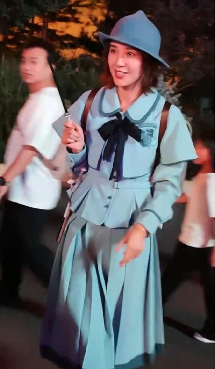 张天爱跟素人合影,胯真的好宽,大宅院似的