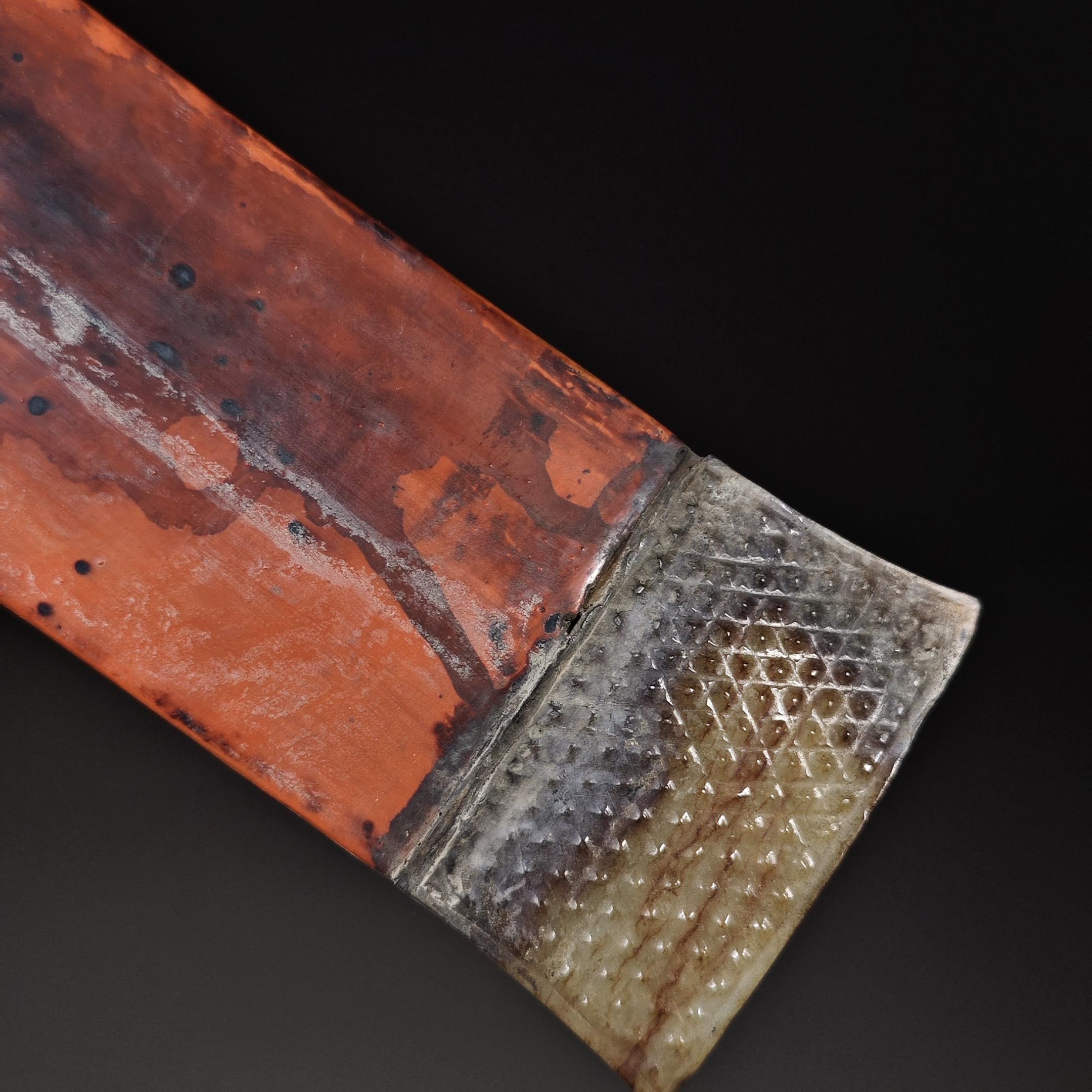 青铜错金银矛头。[青铜错金银矛头,精湛工艺彰显古韵风华。其上错金银技法...