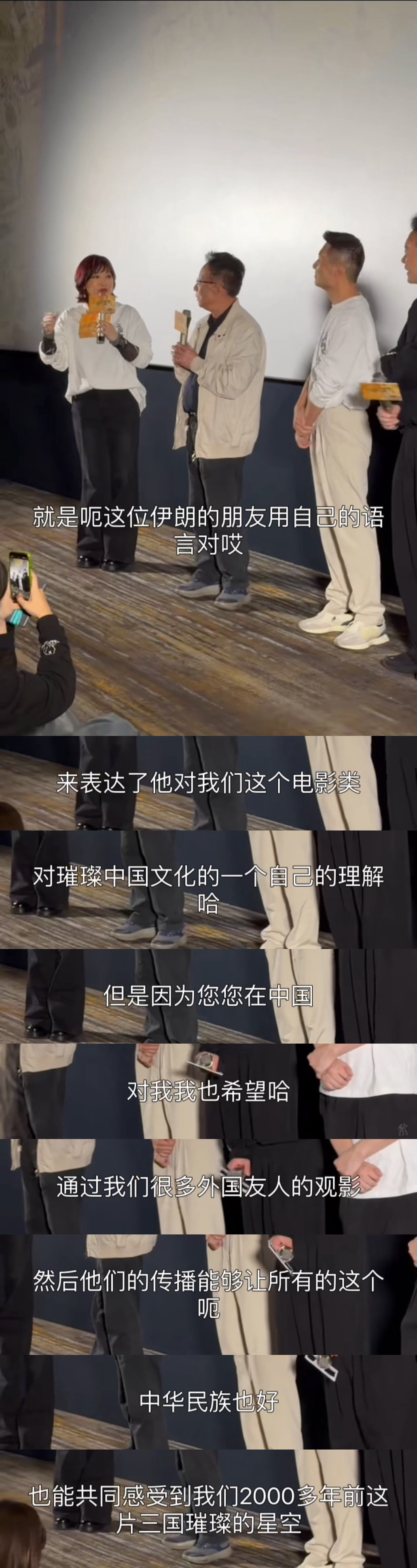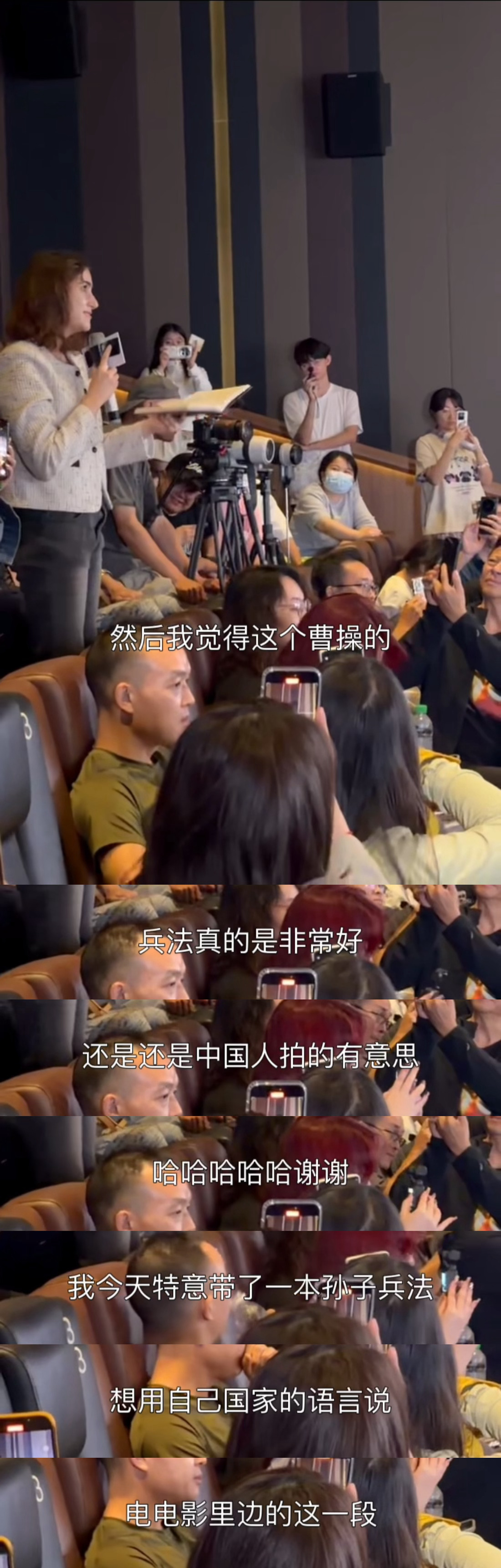 第一次在首映礼听到英文版孙子兵法《三国的星空》首映礼藏着暖心的文化碰撞!一位伊朗观众分享,丝绸之路让两国结缘千年,她深爱《孙子兵法》,电影中曹操运用兵法的桥段让她着迷。随后她现场用伊朗语朗读书中片段,跨越语言的热爱,让中国智慧与三国故事更具世界温度,太期待电影掀起三国文化热!