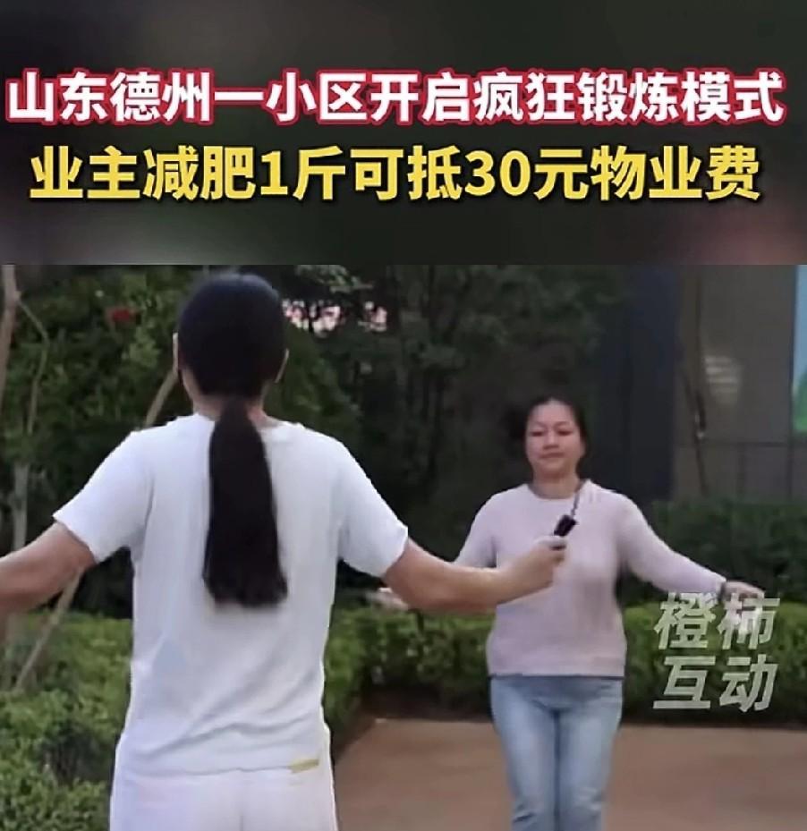 网传山东德州一小区开启了疯狂锻炼模式,小区推出业主减重1斤可抵30元物业费的活动