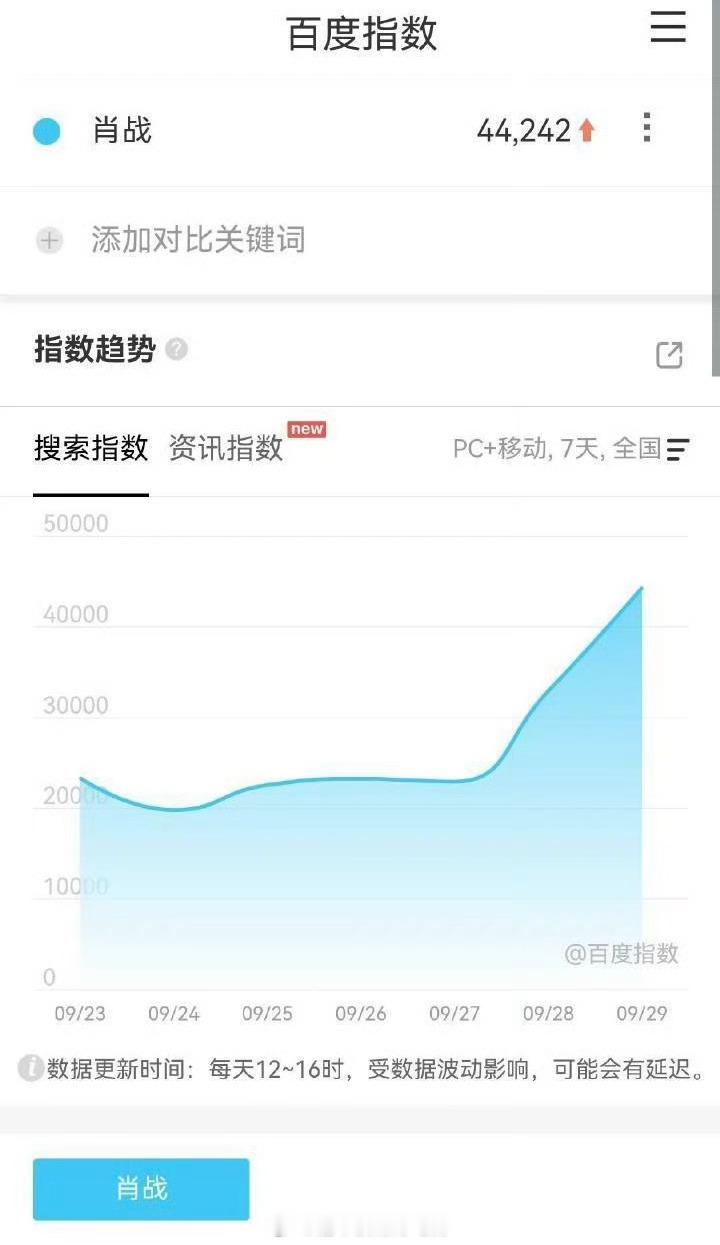29号肖战百指断层第1达到4.4万,抖的关键词指数3.5亿,抖指第一849万,微