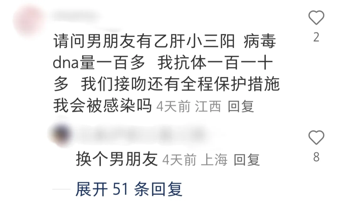[星R][星R]有位朋友在我的作品下留言讲:男朋友有乙肝小三阳,病毒DNA量100多 玩乙肝抗体110多,我们接吻还有全程保护措施,我会被感染吗?