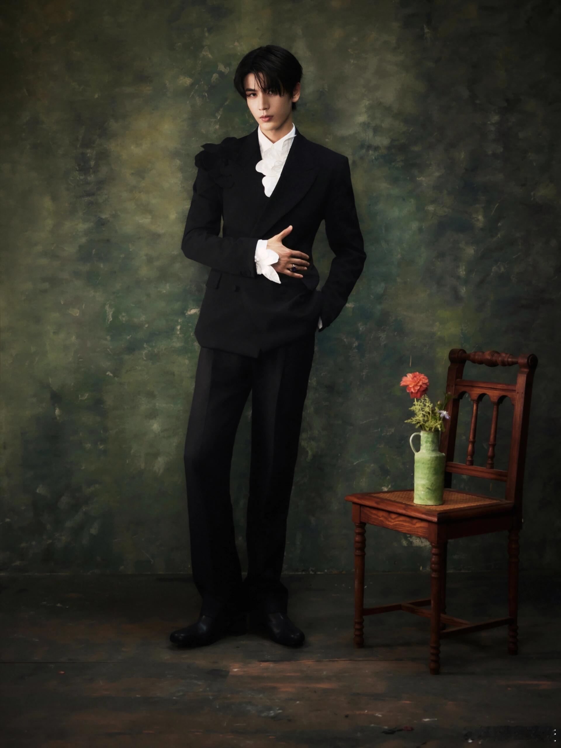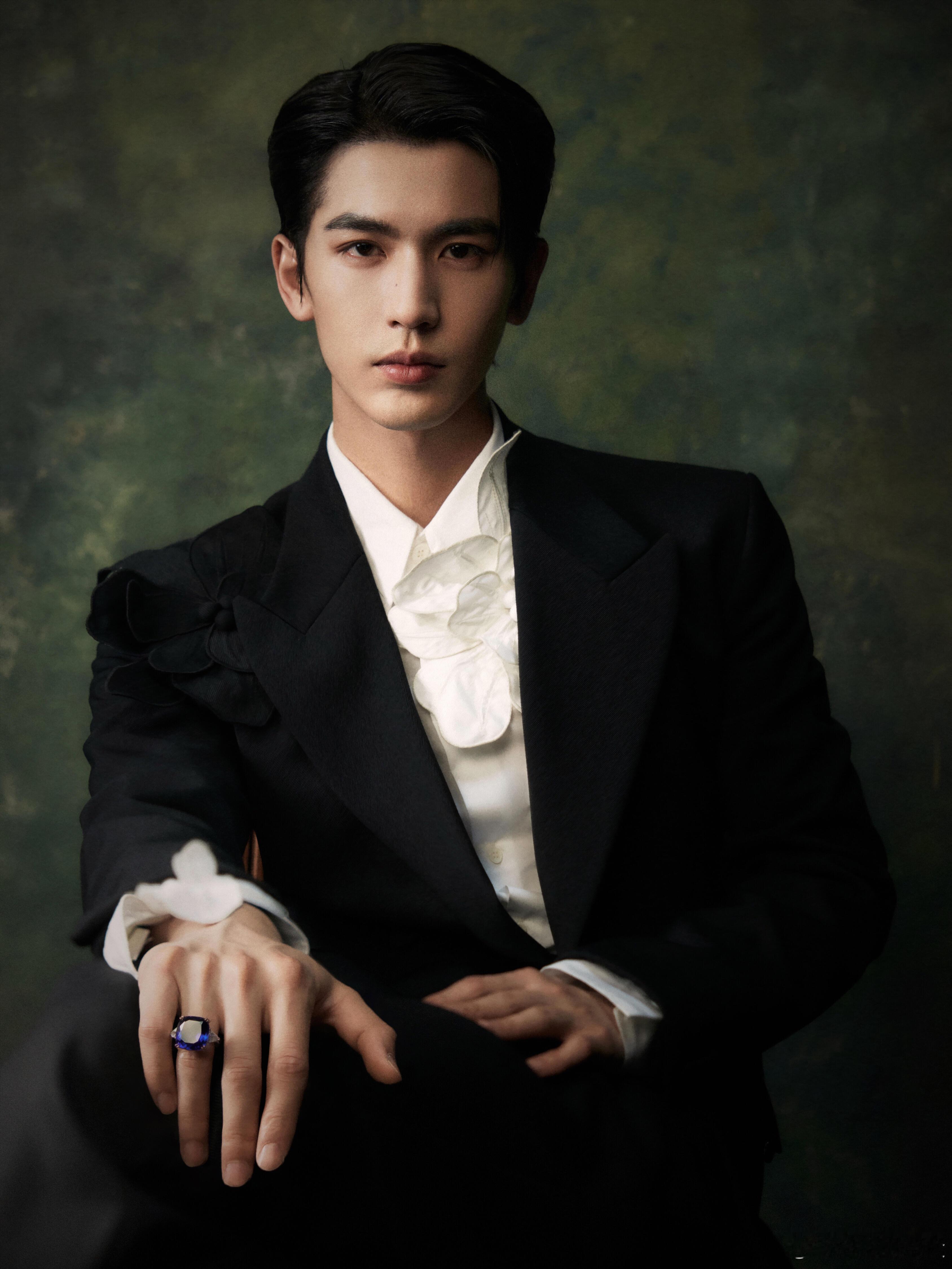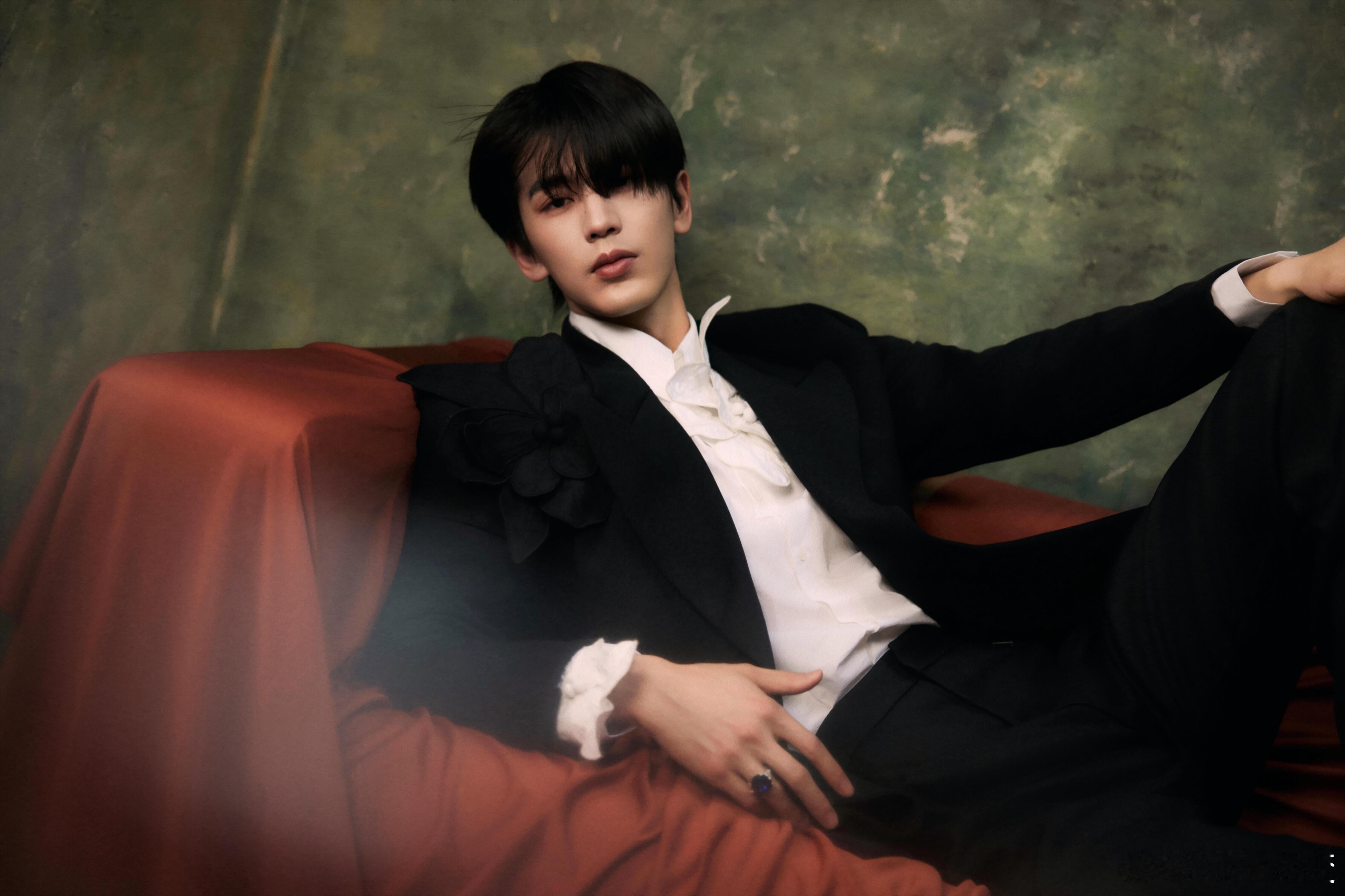张凌赫芭莎年度派对红毯造型,好权威的背头