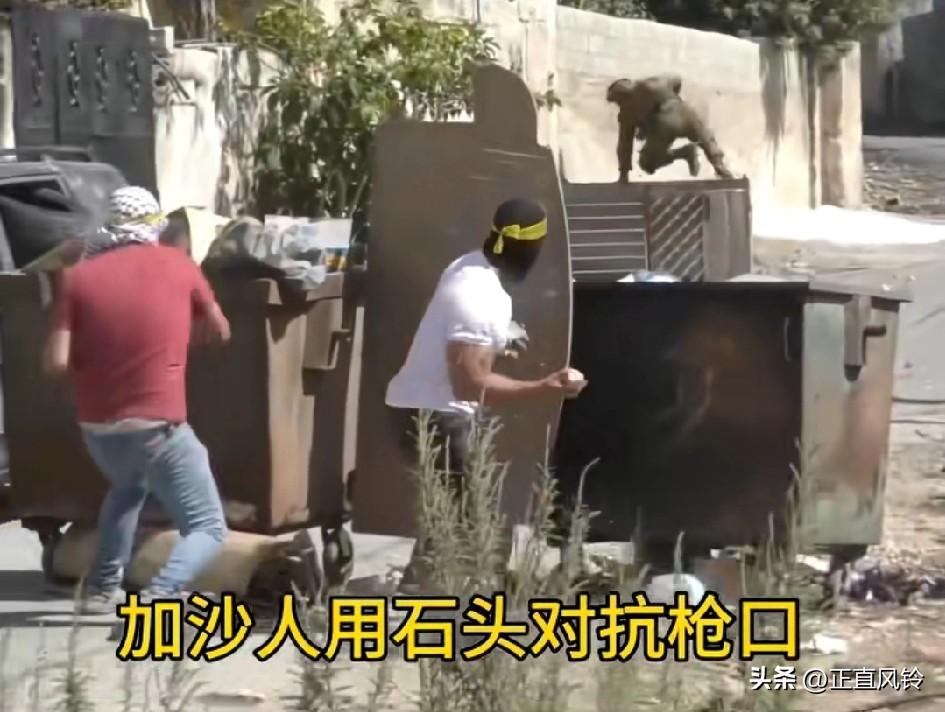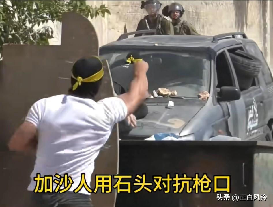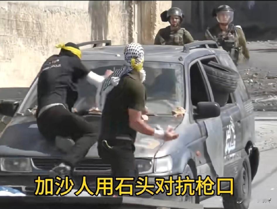 一群加沙年轻人躲在行进的汽车后,手里攥着石头向前方的以色列士兵投掷,开车做掩体,看车后排全是轮胎,挡子弹 终于回到石器时代了!他们边打边退,试图用最原始的方式表达抵抗,但迎面而来的却是真枪实弹的扫射。对面 是防爆部队不是作战部队,否则没机会扔第二颗石头!最佳的是想办法把这两个士兵搞定,换上装备潜伏入队漫漫杀。有10个人,前后突袭夹击,才有可能搞定他们 石头与子弹的对峙,不仅展现了力量的极度悬殊,也折射出加沙民众在生死夹缝中的绝望抗争。就是这样死都要拉一个垫死,勇敢的人越多越好,加油干英雄。