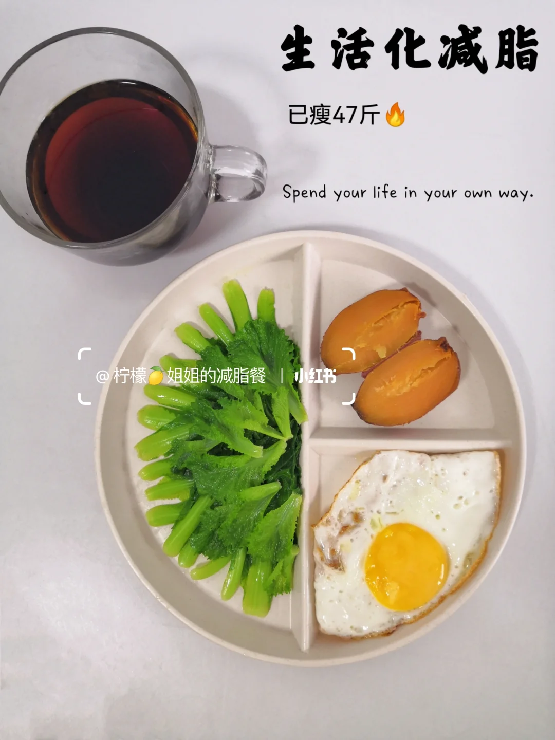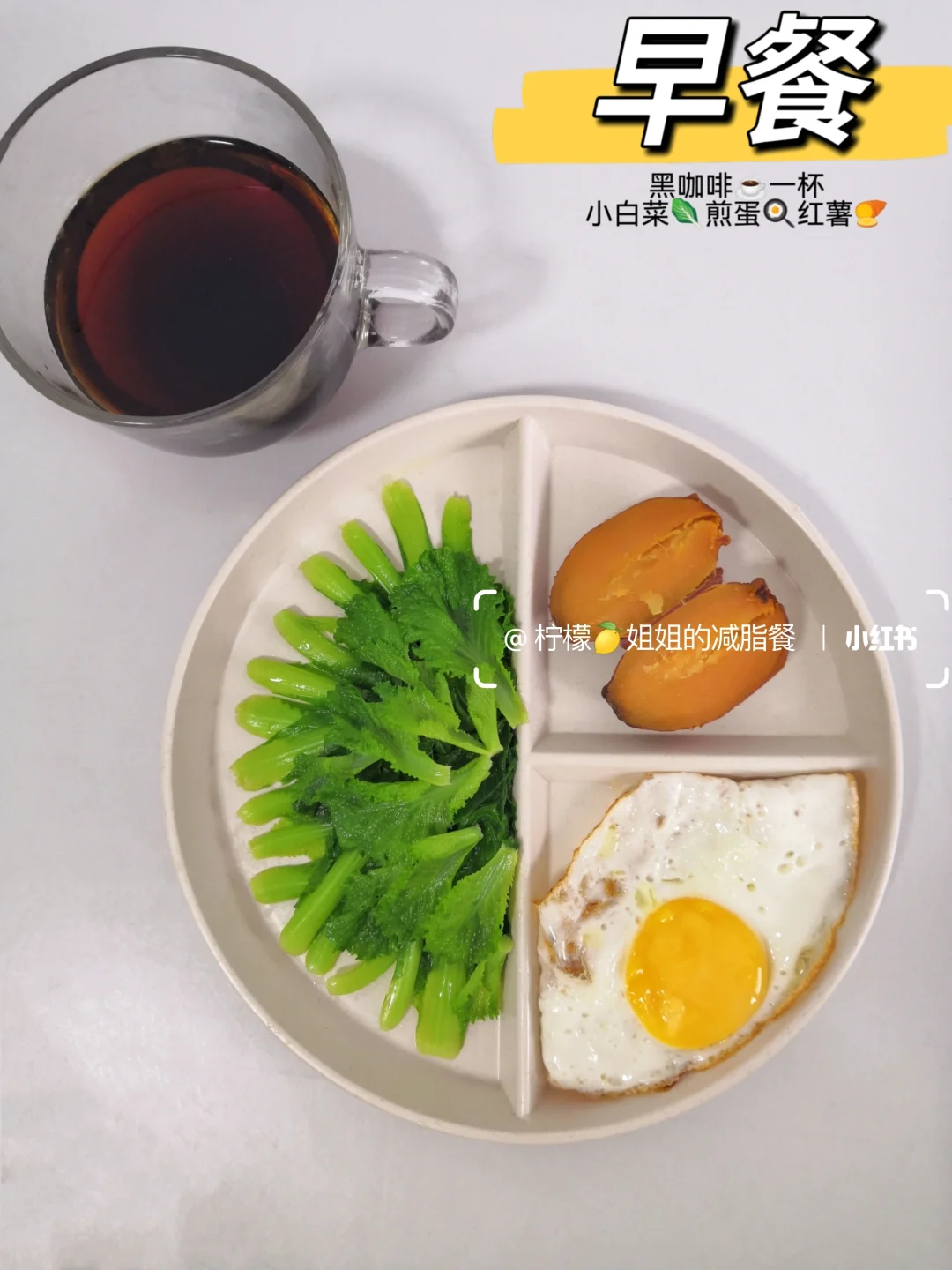 早餐⏱:黑咖啡☕️煎蛋🍳小白菜,红薯