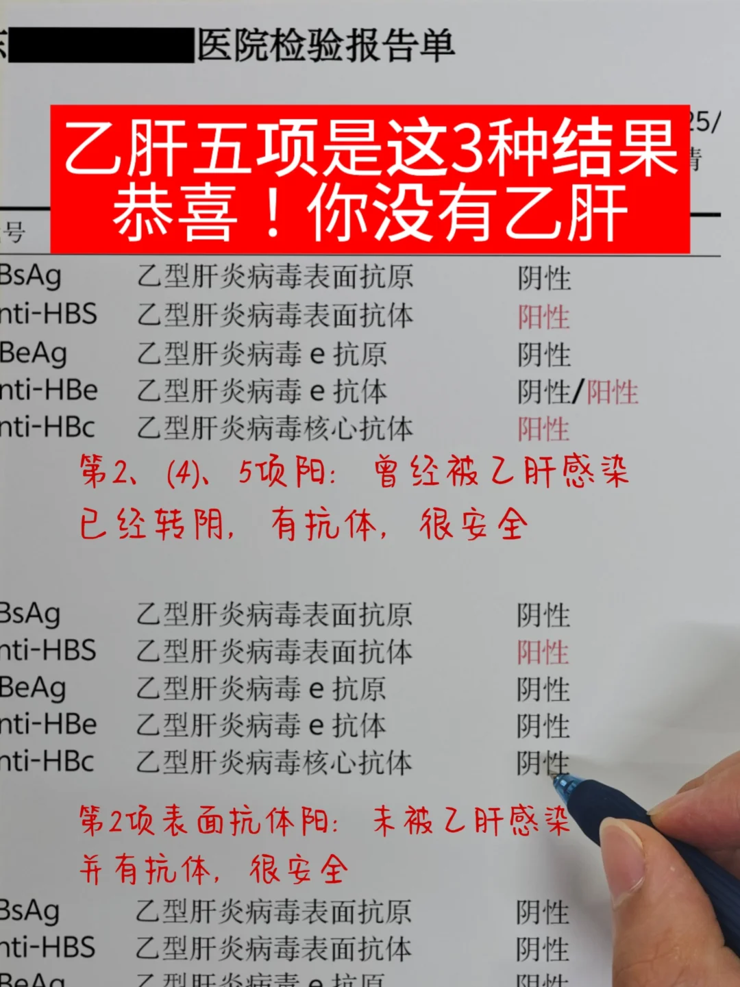 [零R][一R]结果一:乙肝五项2、(4)、5阳性:表示曾经被乙肝感染过,可能经过治疗后成功转阴或自愈,并已经产生了乙肝抗体,目前很安全。