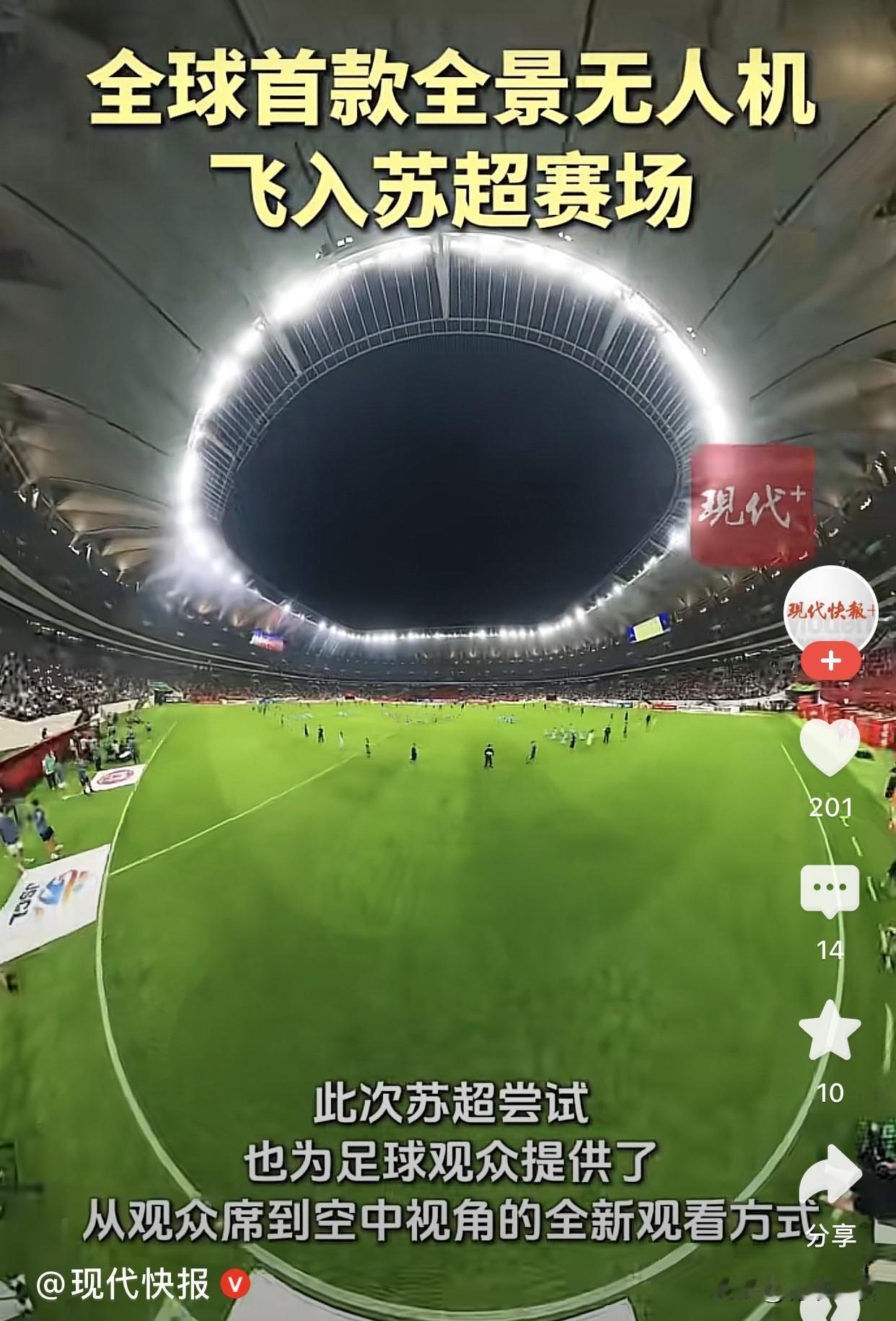 苏超太秀了[赞]。思路对了,搞不好足球不重要,关键在于搞点其他。 谁能想到,全球首款全景无人机亮相绿茵场,直接把观赛体验玩出了新高度。 以往看球,要么是看台视角的局部聚焦,要么是固定机位的常规转播,总少了点“身临其境”的震撼。但这架全景无人机一升空,360度无死角的沉浸拍摄瞬间打破局限。上一秒还像坐在看台紧盯球员跑位,下一秒镜头拉升,就能以鸟瞰视角将整个赛场的攻防布局尽收眼底,连球员的战术跑位都看得清清楚楚。