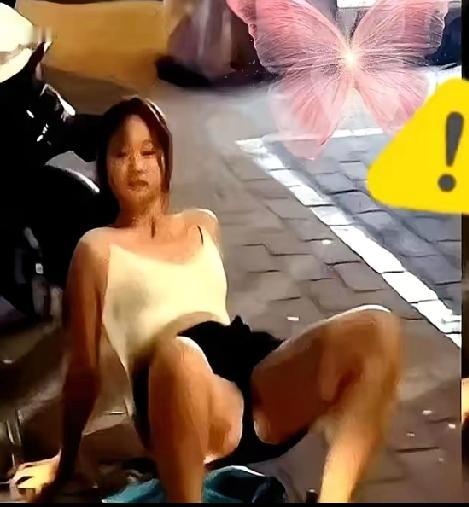 我的妈呀!这姑娘怕是要“社死”到地心啦! 大半夜刷到个视频,一姑娘在马路中间手
