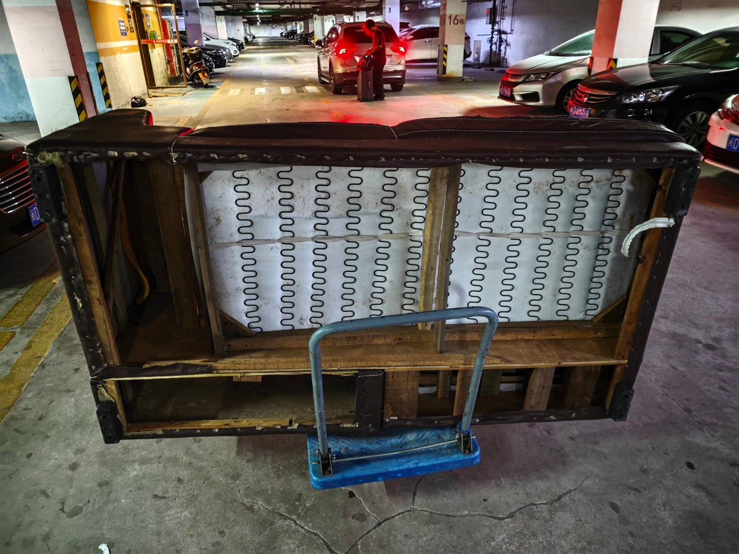 朋友说你一个人绝对办不了,楼上收垃圾阿姨说一个人肯定做不了这事儿,保安亭的哥们说你用这个小推车搬沙发?
