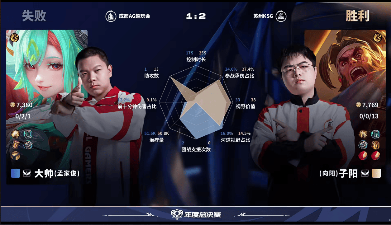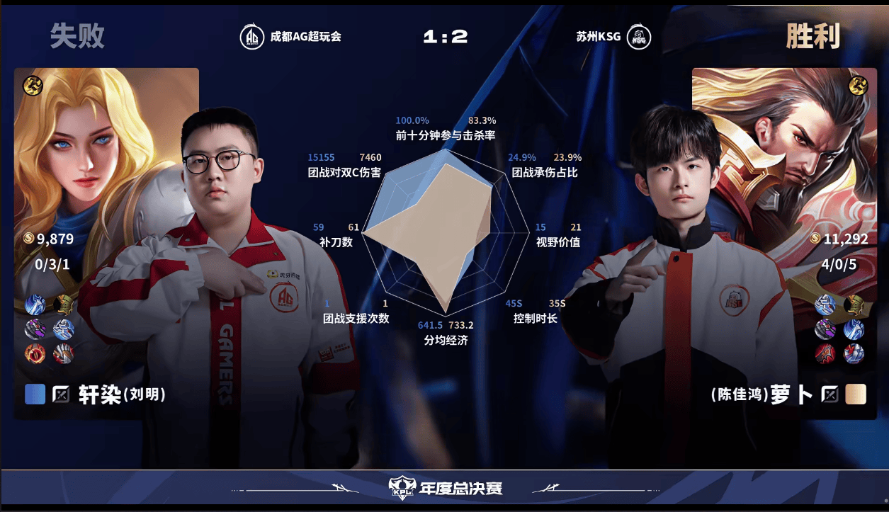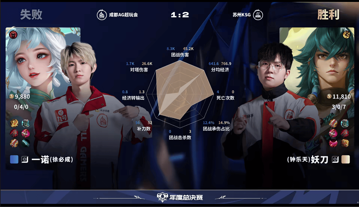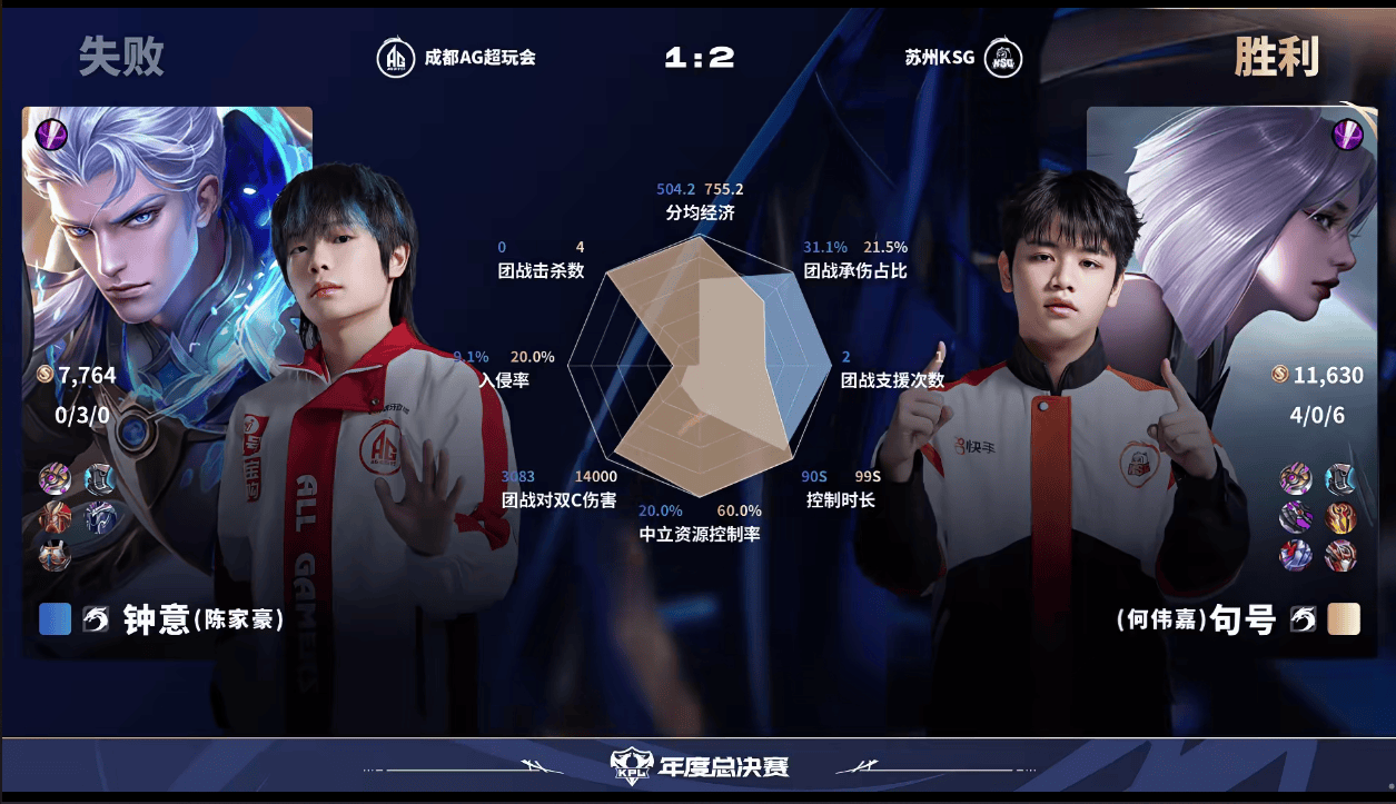 虎扑09月30日讯KSG/AG第三局数据对比:妖刀苍多数据大范围包围一诺公孙离